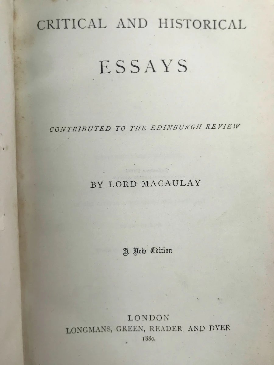 里维耶工坊特装本!1880年 麦考莱评论与历史随笔集 全真皮精装32开