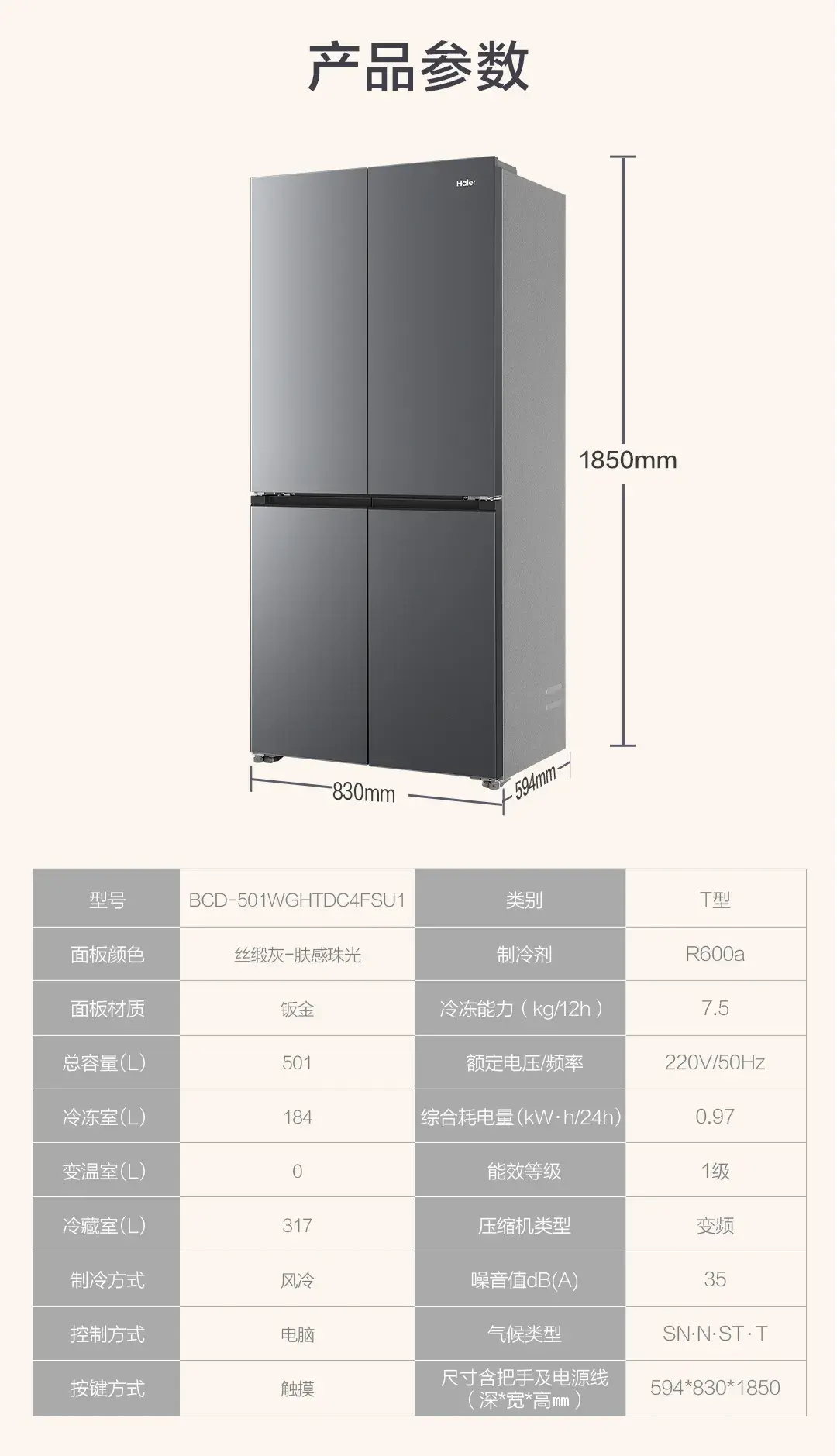 海尔(Haier)冰箱 BCD-501WGHTDC4FSU1