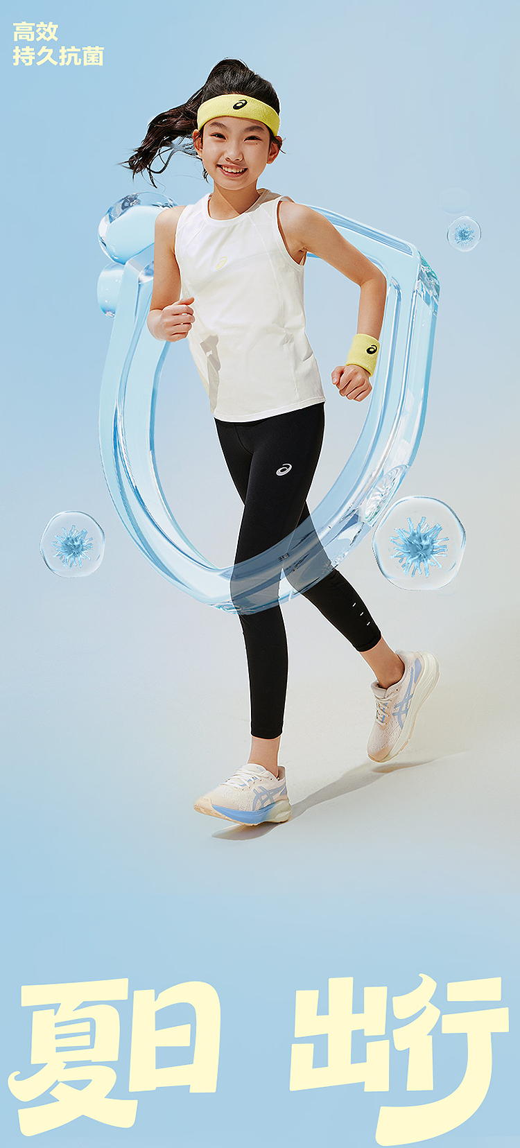 ASICS/亚瑟士26年女童吸湿速干无袖运动背心抗菌透气运动舒适
