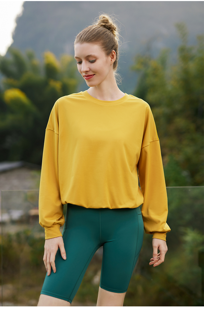 凡圣瑜伽卫衣女新款运动休闲百搭纯色简约气质宽松套头上衣F12804