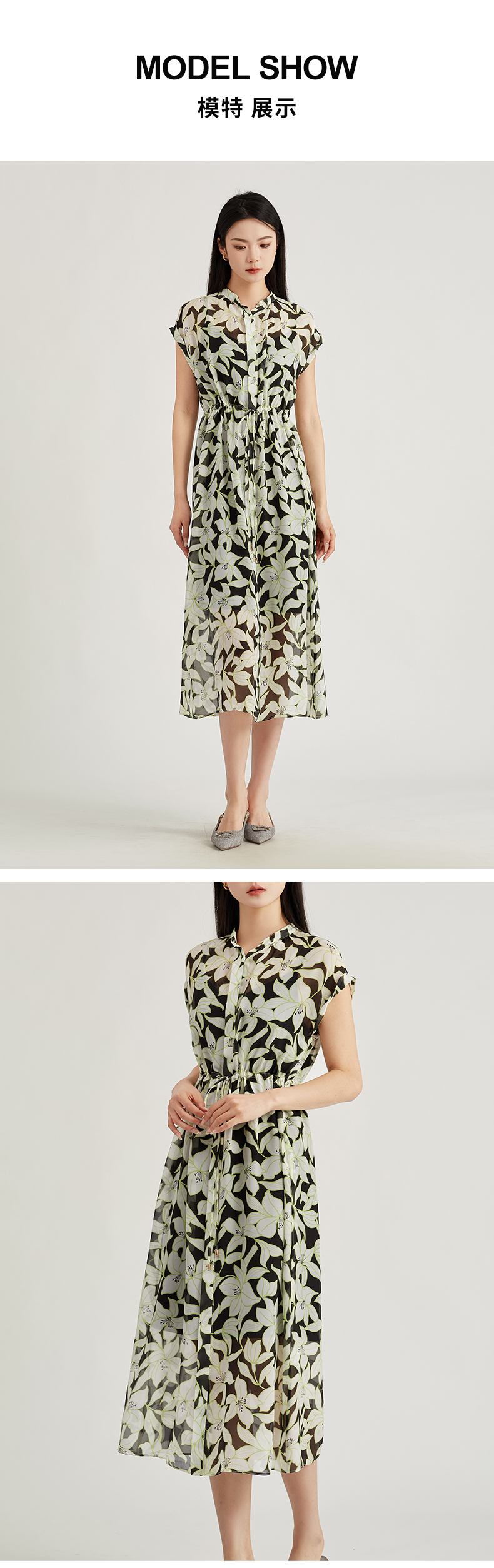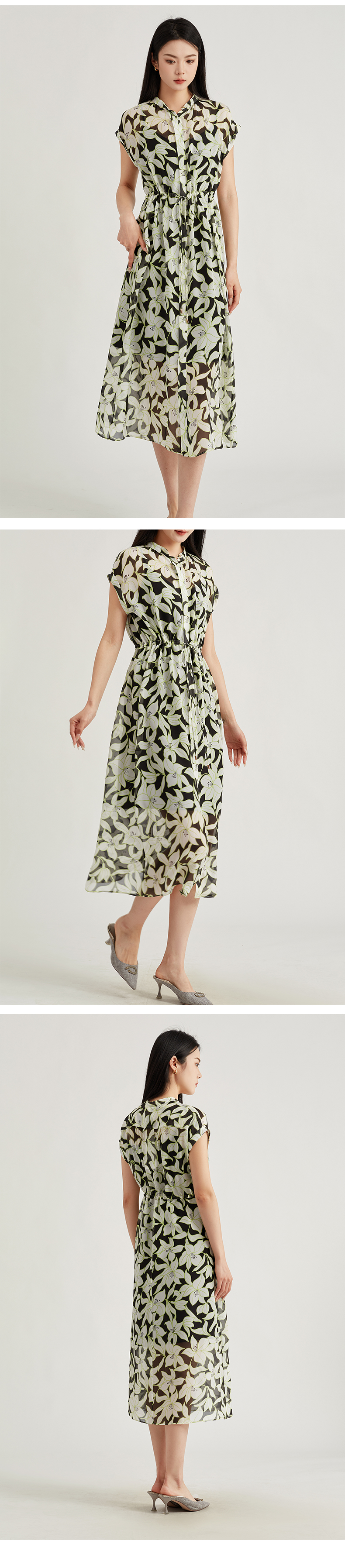 【商场同款】阿菁娜柔美桑蚕丝印花朦胧雾感连衣裙A30X112098