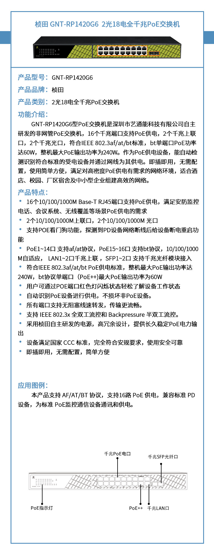 2光18电全千兆PoE交换机 RP1420G6