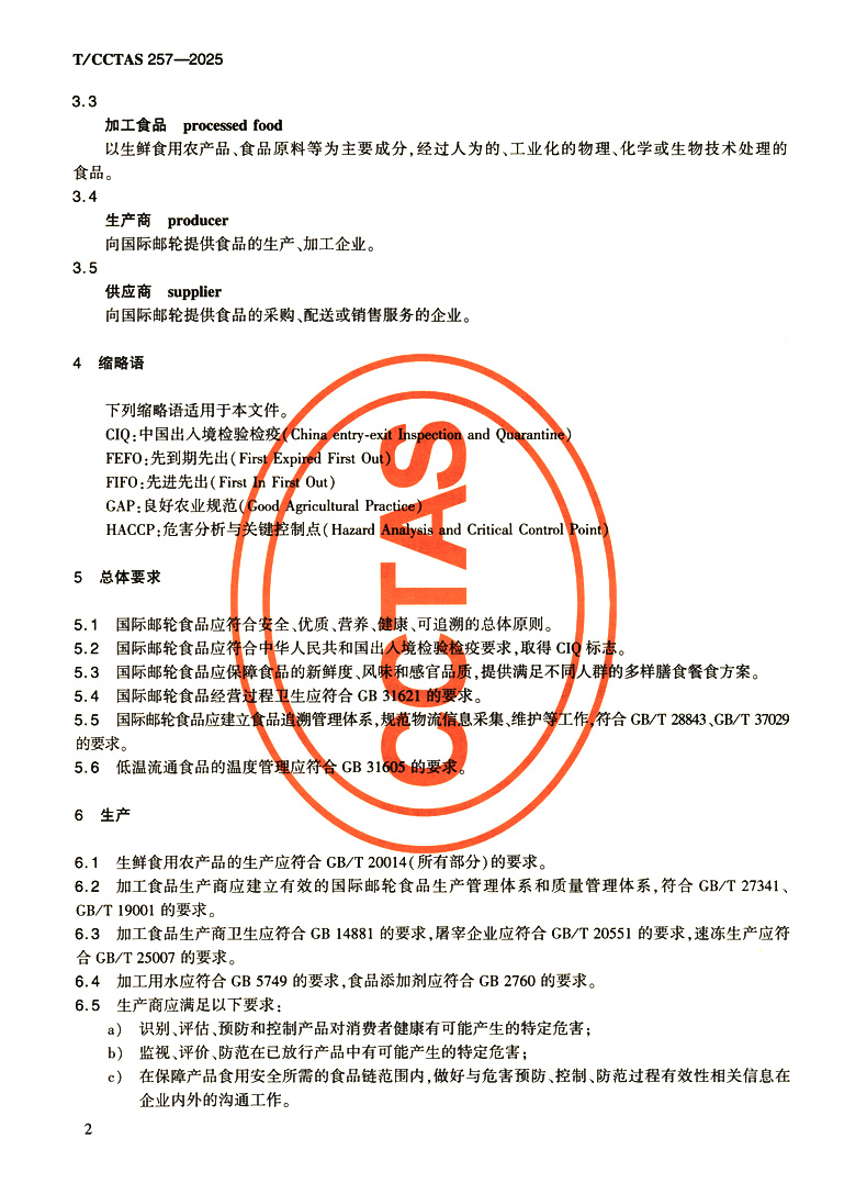 书名:国际邮轮食品 通则T/CCTAS 257—2025
