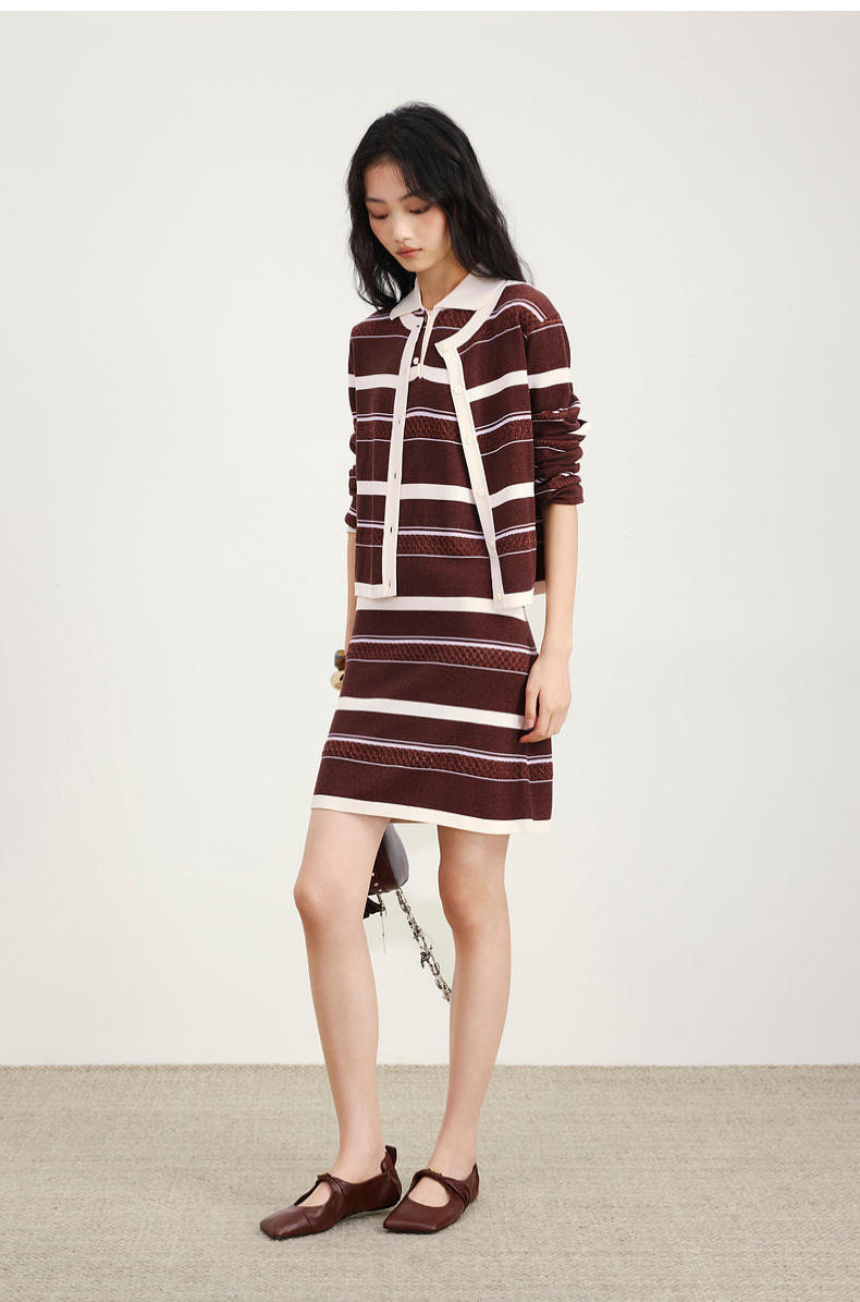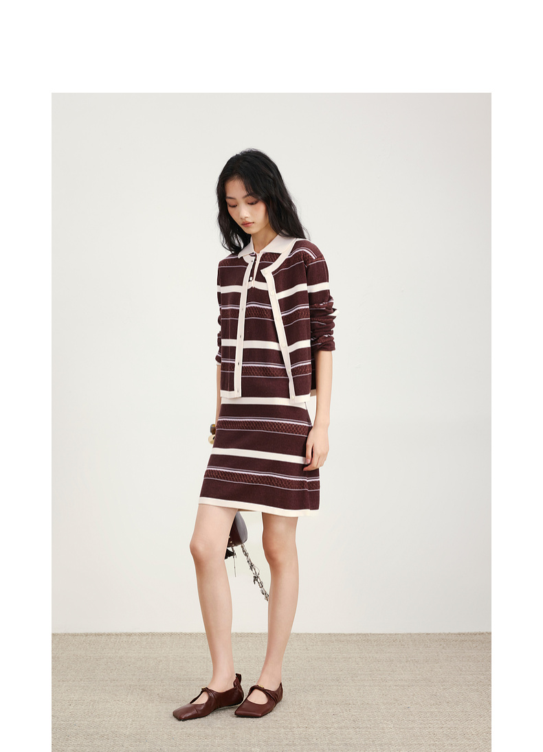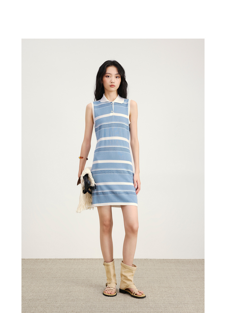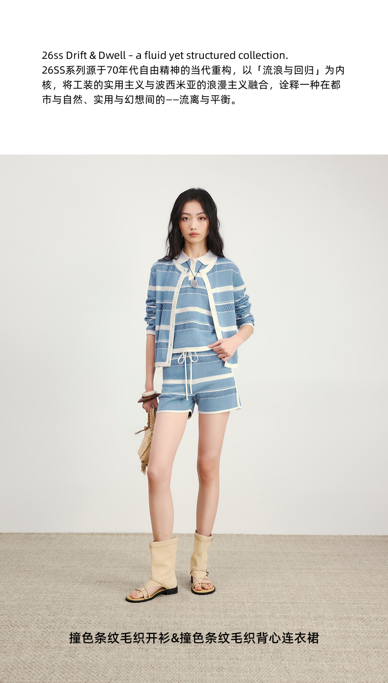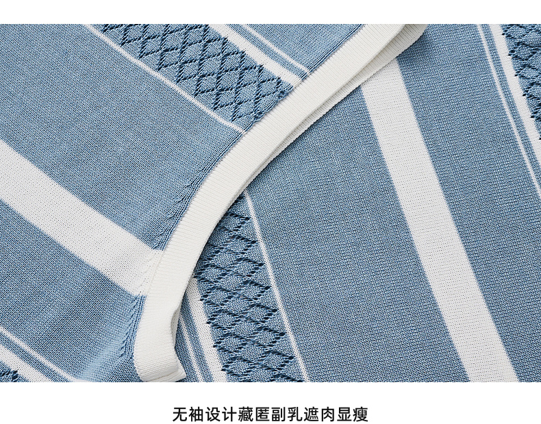 lost in echo2026年春夏新款撞色条纹毛织背心修身连衣裙毛织开衫