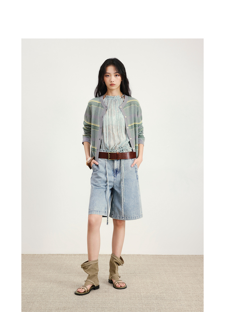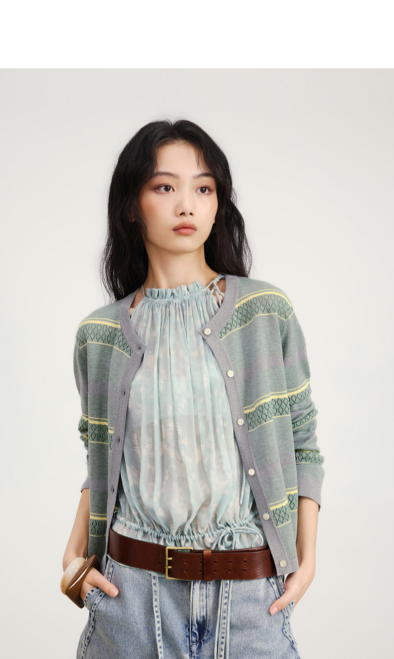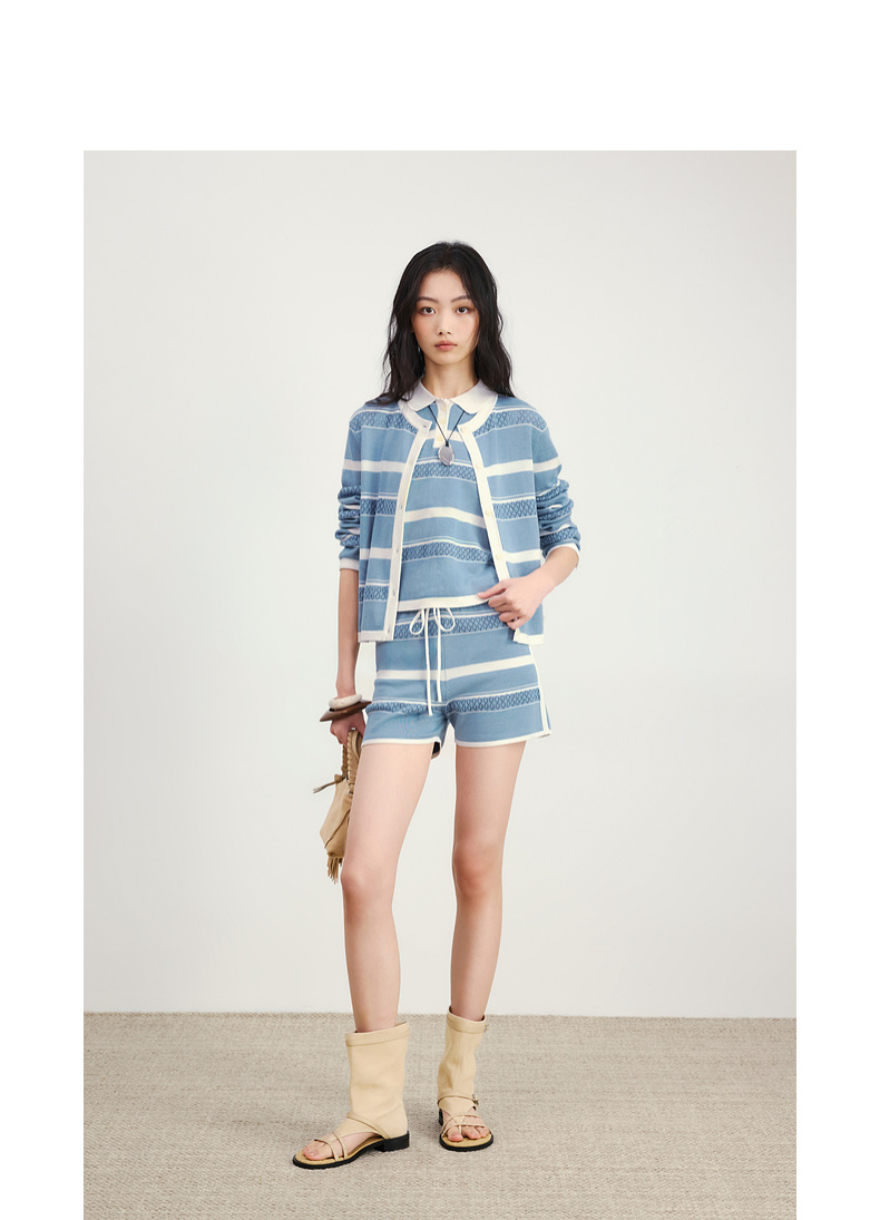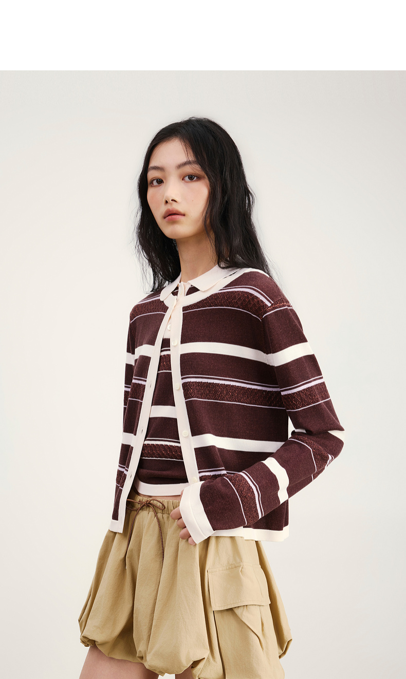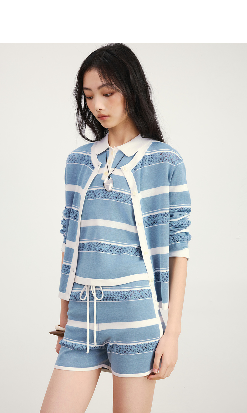 lost in echo2026年春夏新款撞色条纹毛织背心修身连衣裙毛织开衫