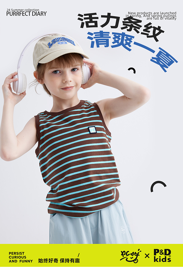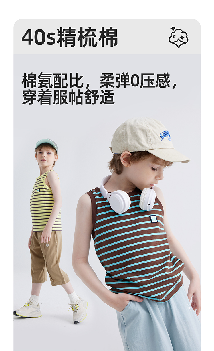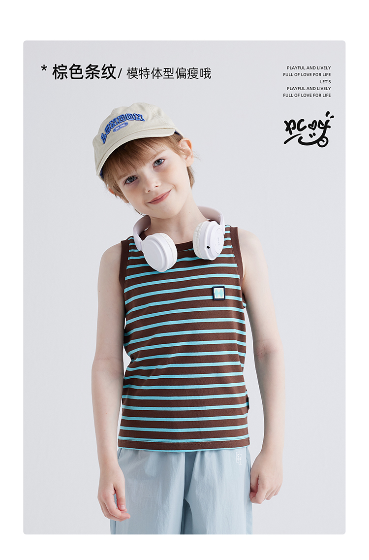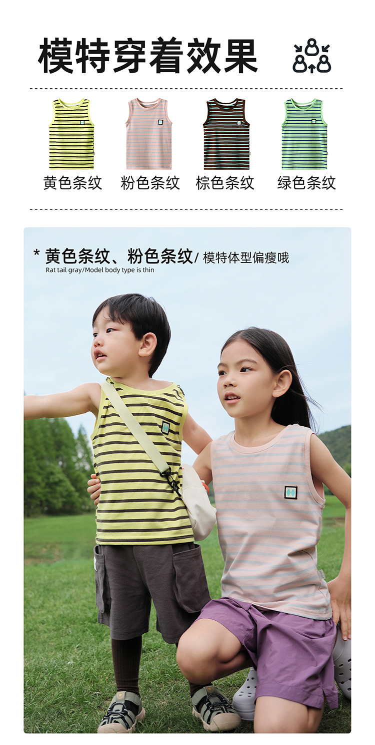 【40S精梳棉 绵软不易起球】儿童夏日条纹背心PXB2401