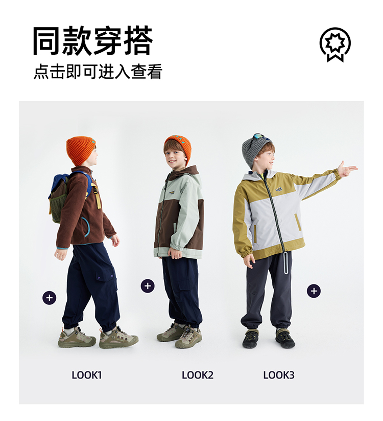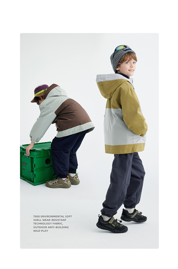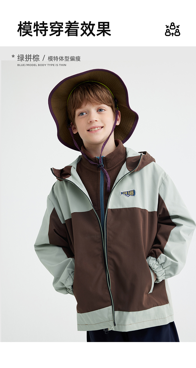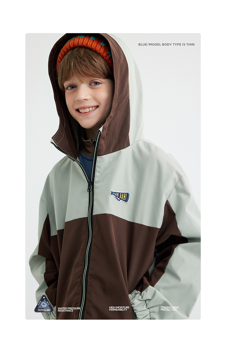 【拒水透湿软壳冲锋衣】儿童连帽拼色冲锋衣外套 PQWT2410
