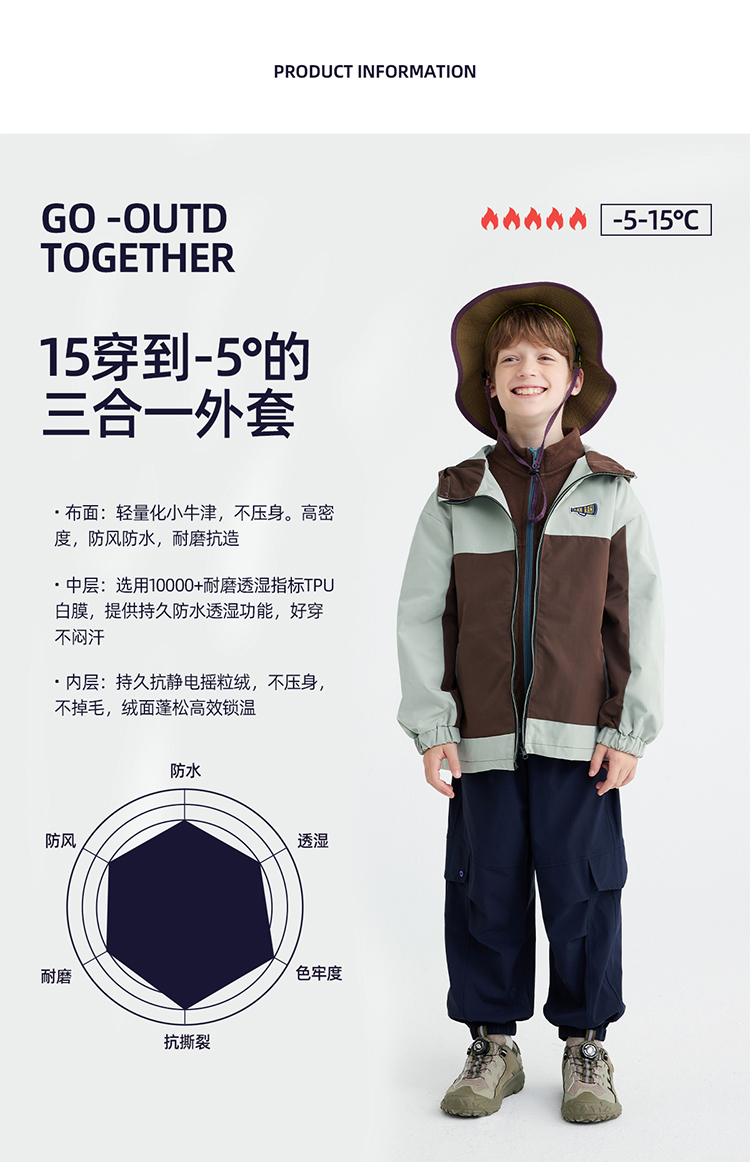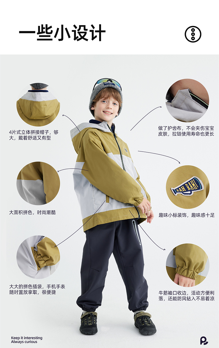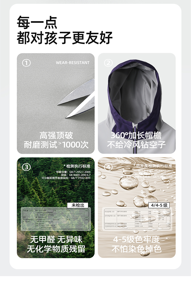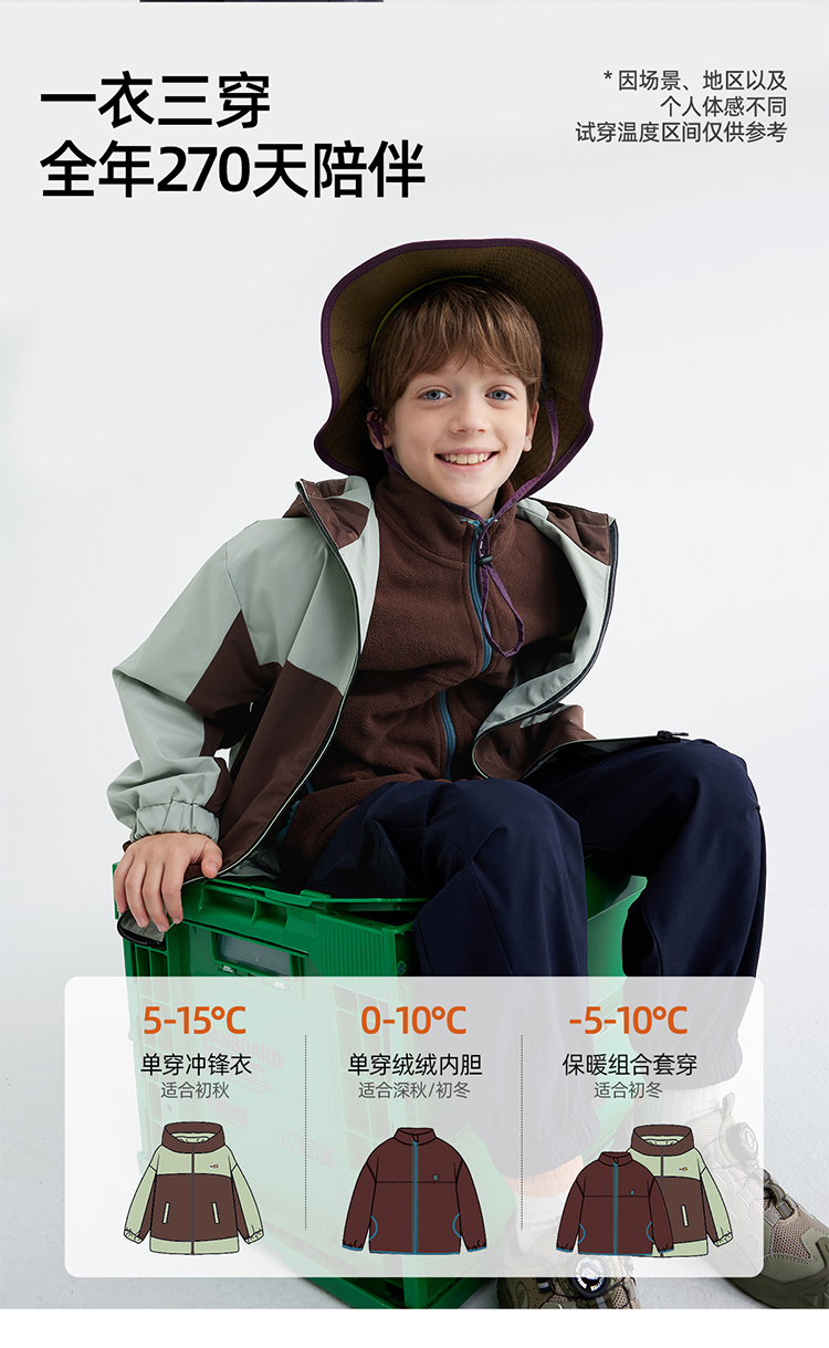 【拒水透湿软壳冲锋衣】儿童连帽拼色冲锋衣外套 PQWT2410