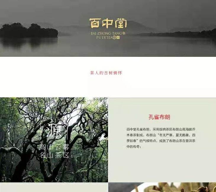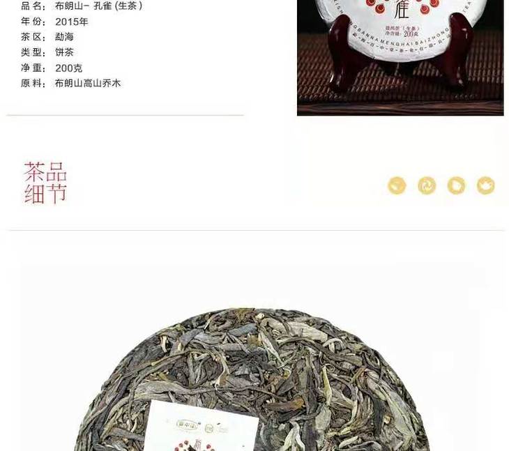 百中堂 2015年 布朗孔雀普洱茶 生茶200g