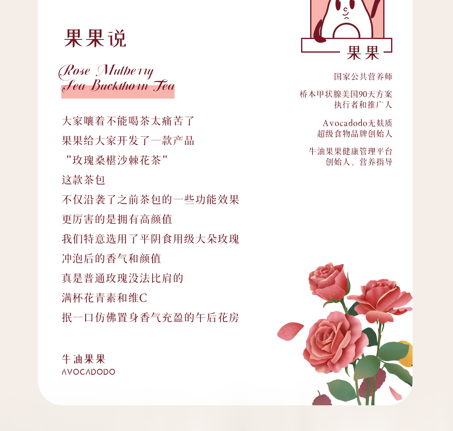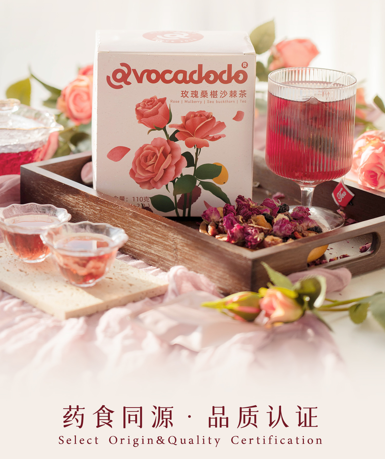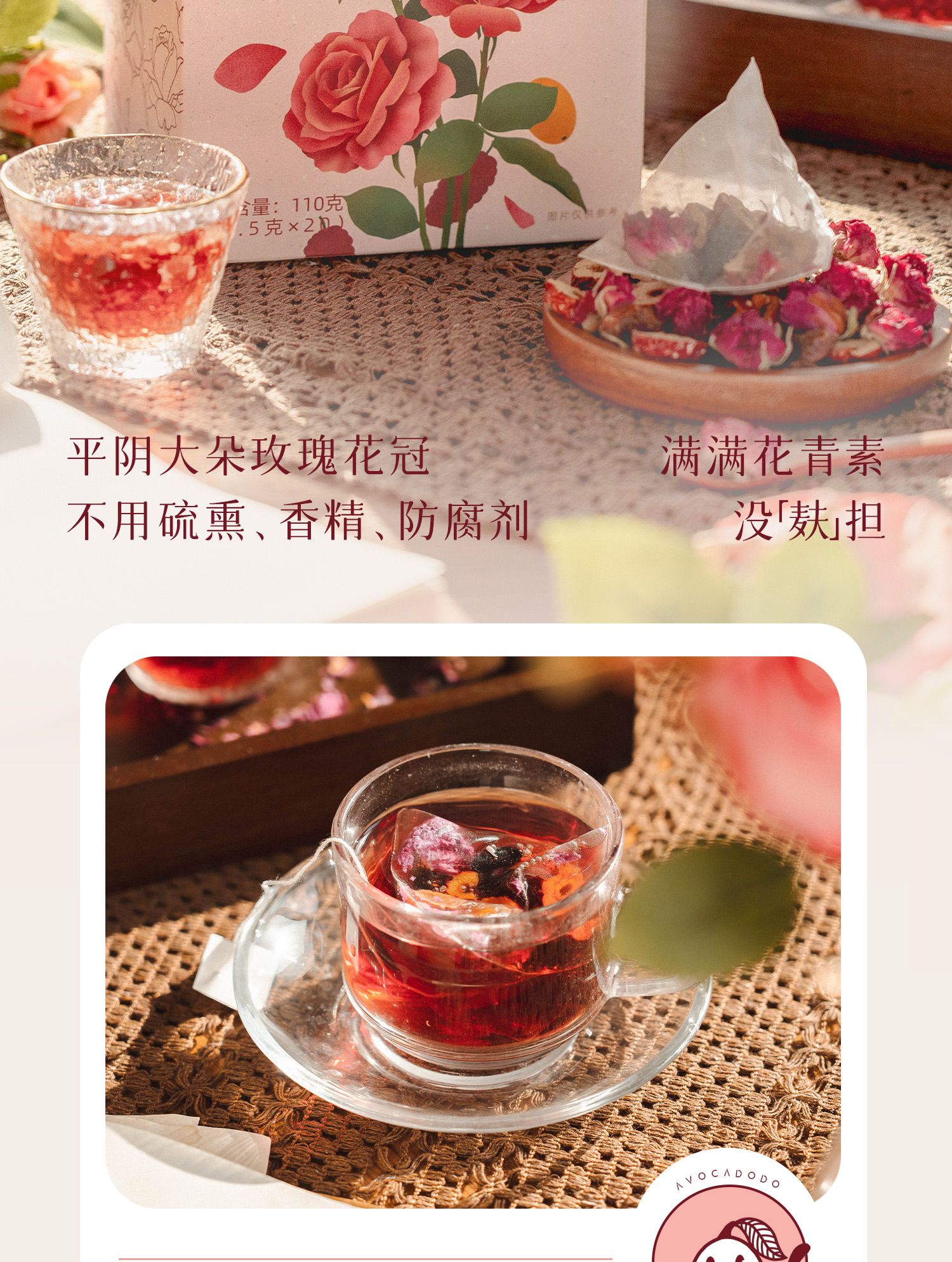 Avocadodo玫瑰桑葚沙棘茶花茶平阴大朵玫瑰花冠20包独立包装