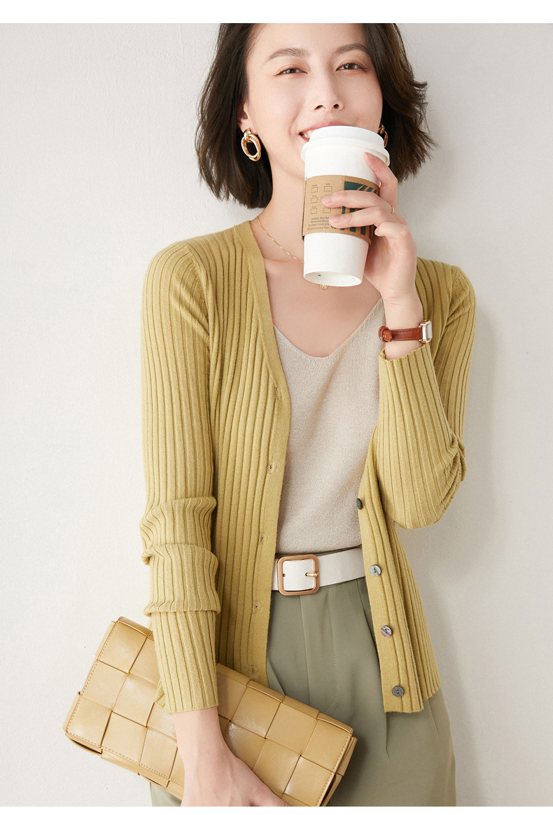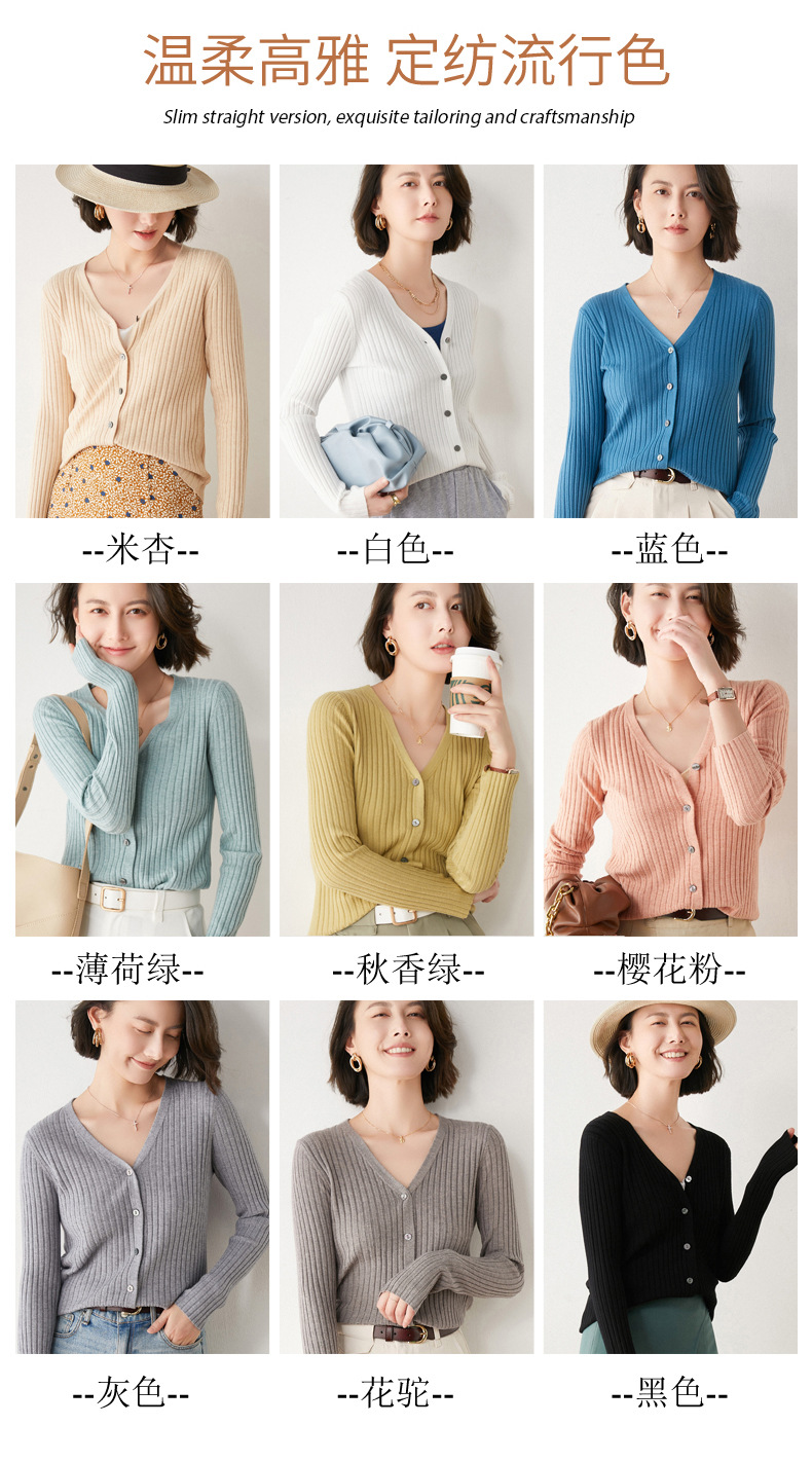 【99元两件!】时尚百搭 透气亲肤 细腻触感 视觉显瘦 多色可选 日式V领针织开衫