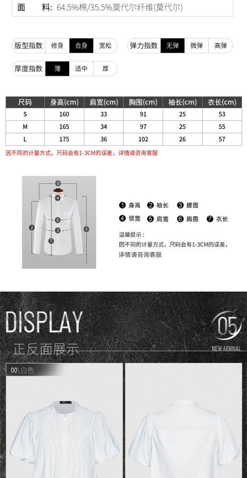 G2000女装SS26商场新款【棉质莫代尔】柔软温柔甜美短袖休闲衬衫61243421