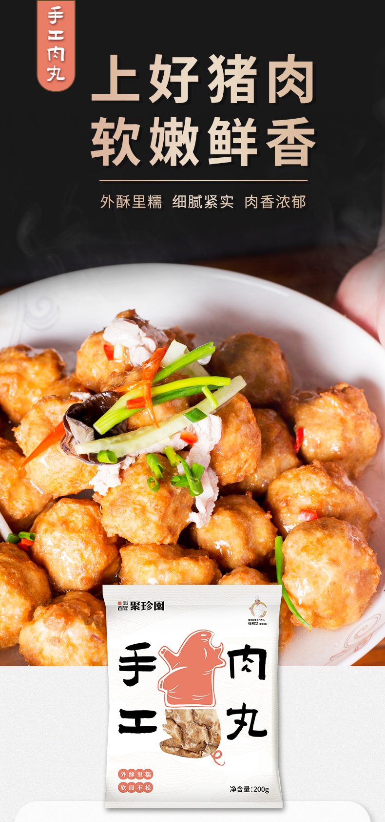 【严选】百年聚珍园荆州特产手工肉丸/鱼丸200g*3袋