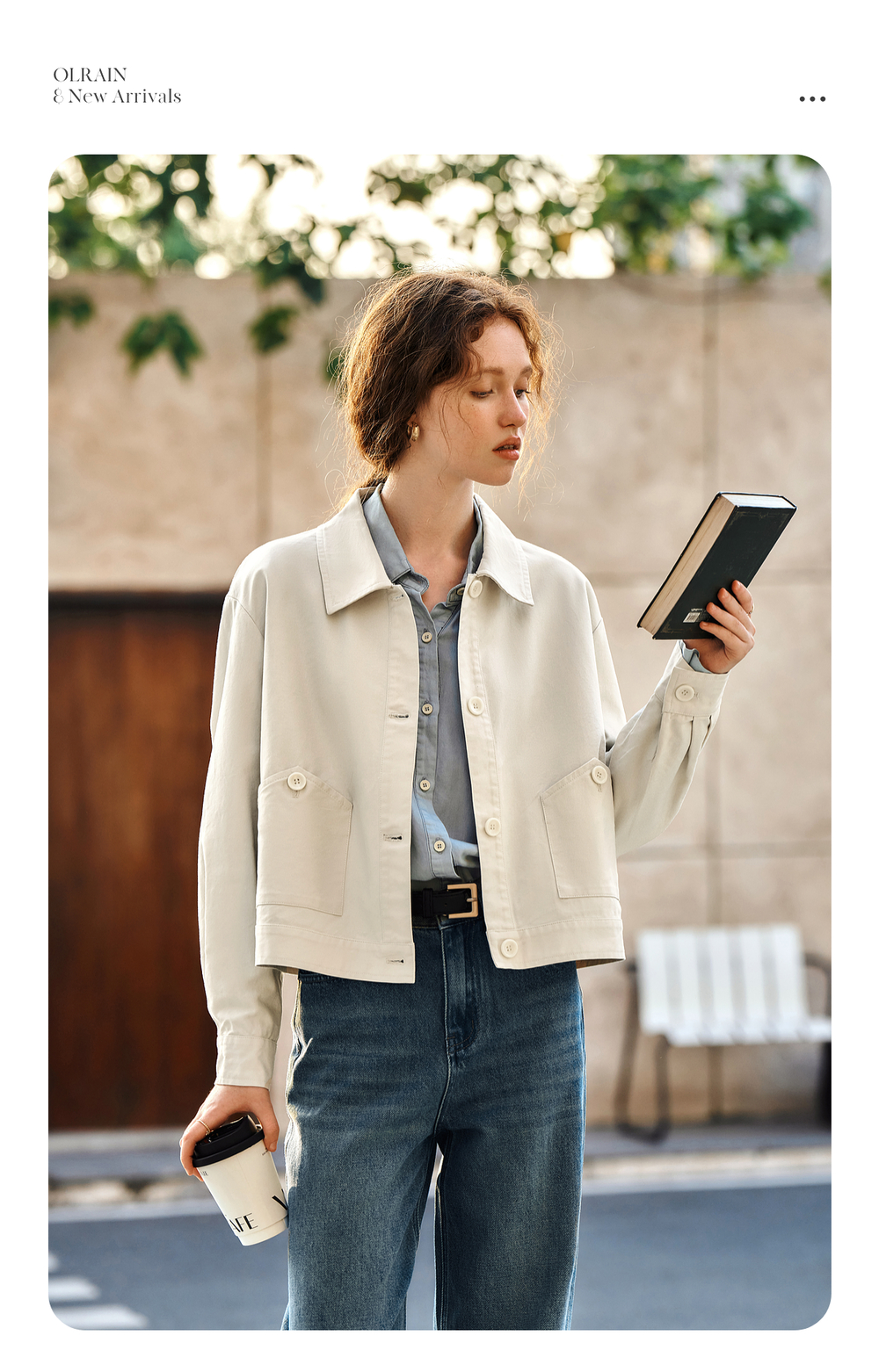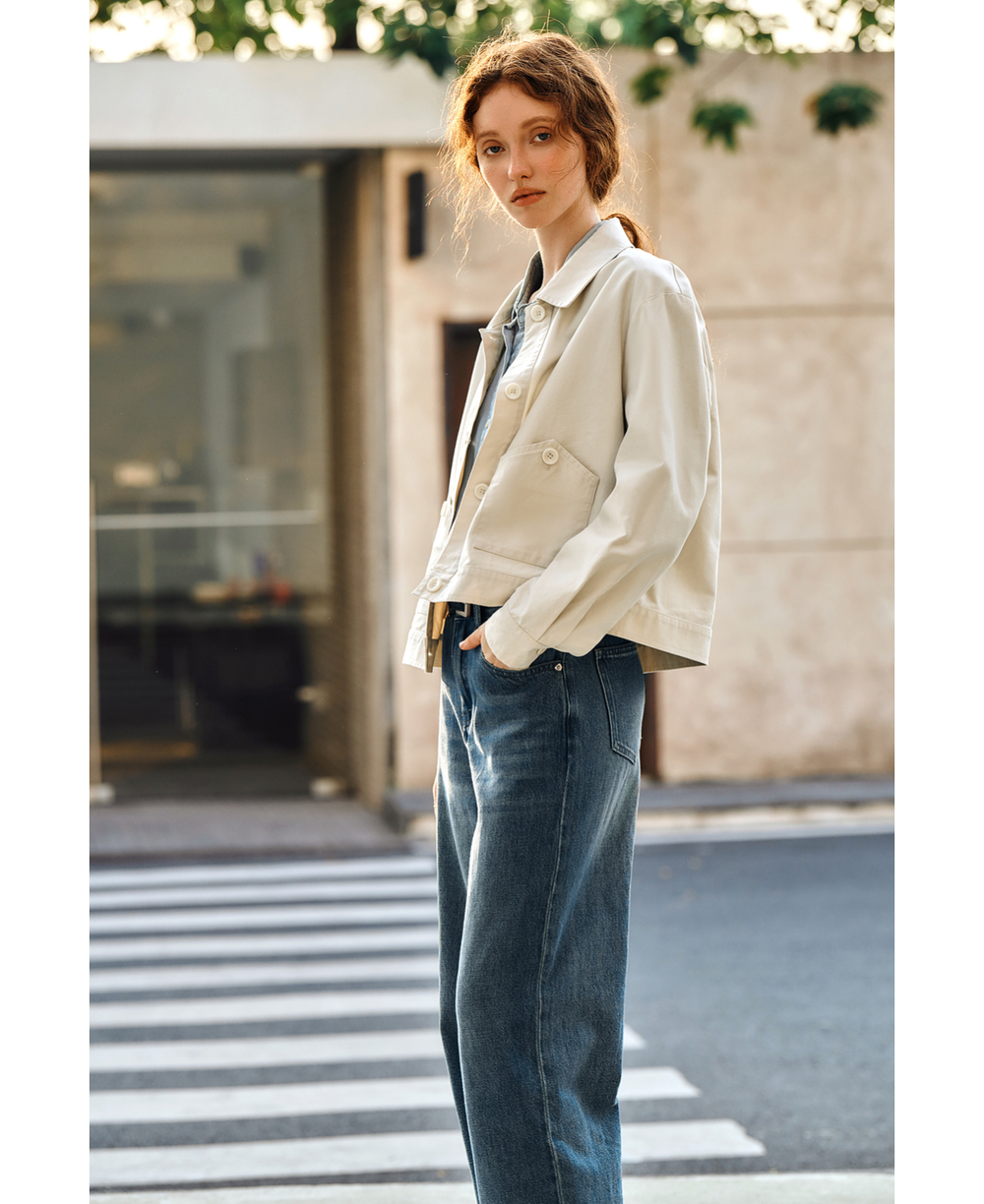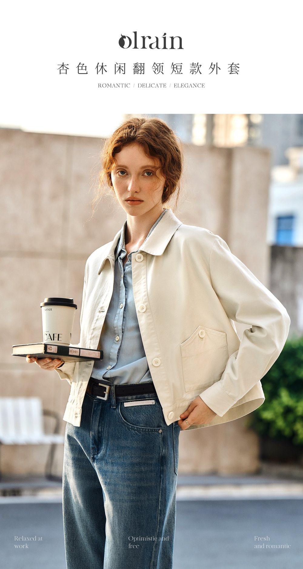 OLrain欧芮儿杏色休闲短外套女春季2025年新款通勤百搭翻领上衣