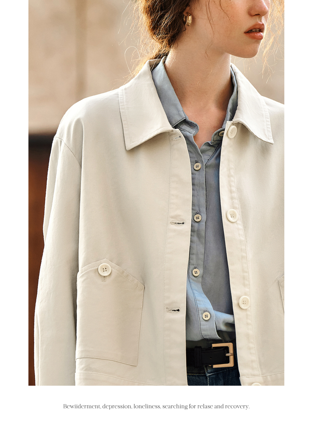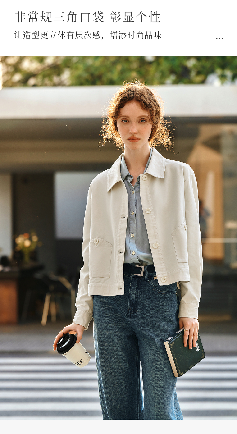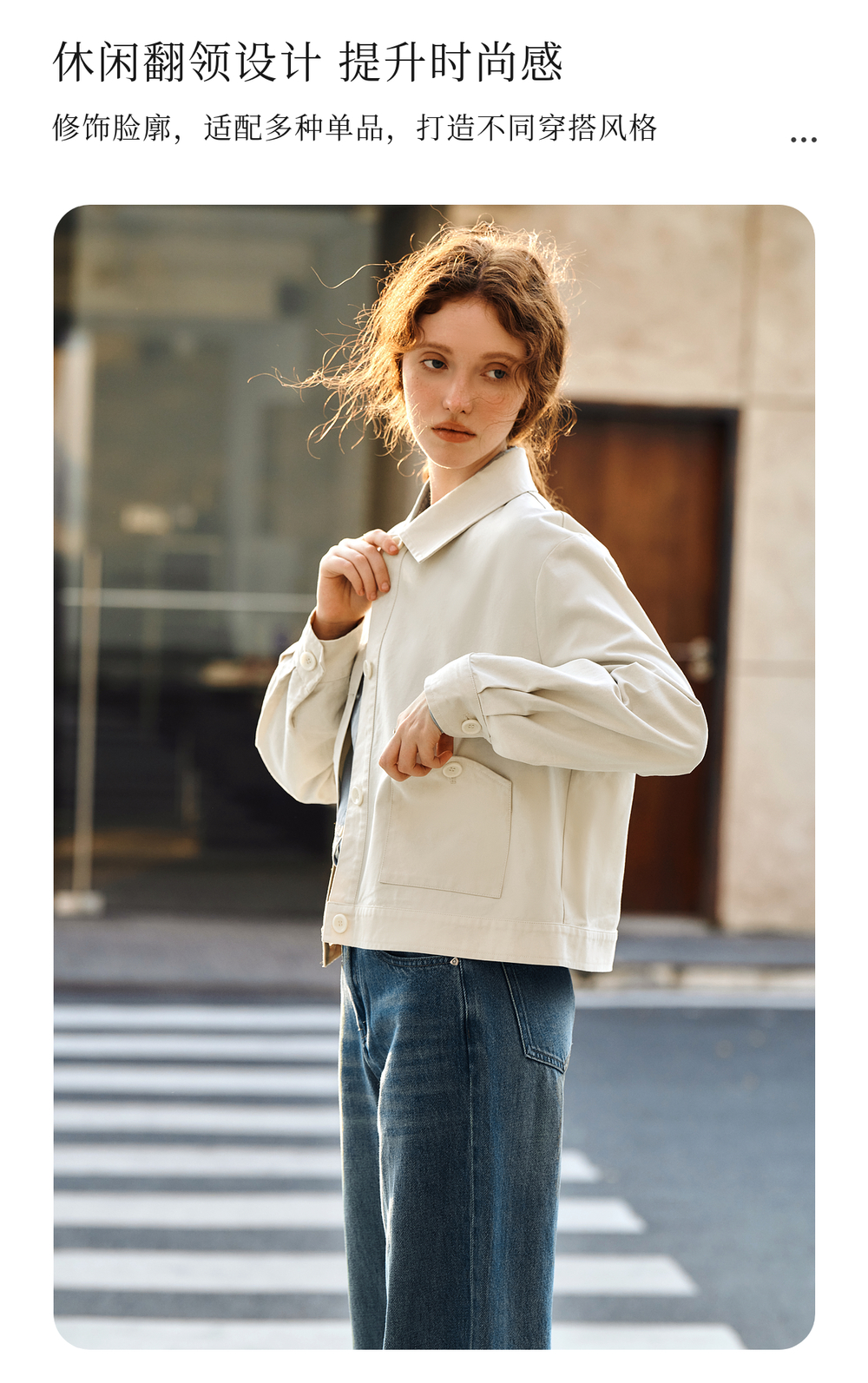 OLrain欧芮儿杏色休闲短外套女春季2025年新款通勤百搭翻领上衣