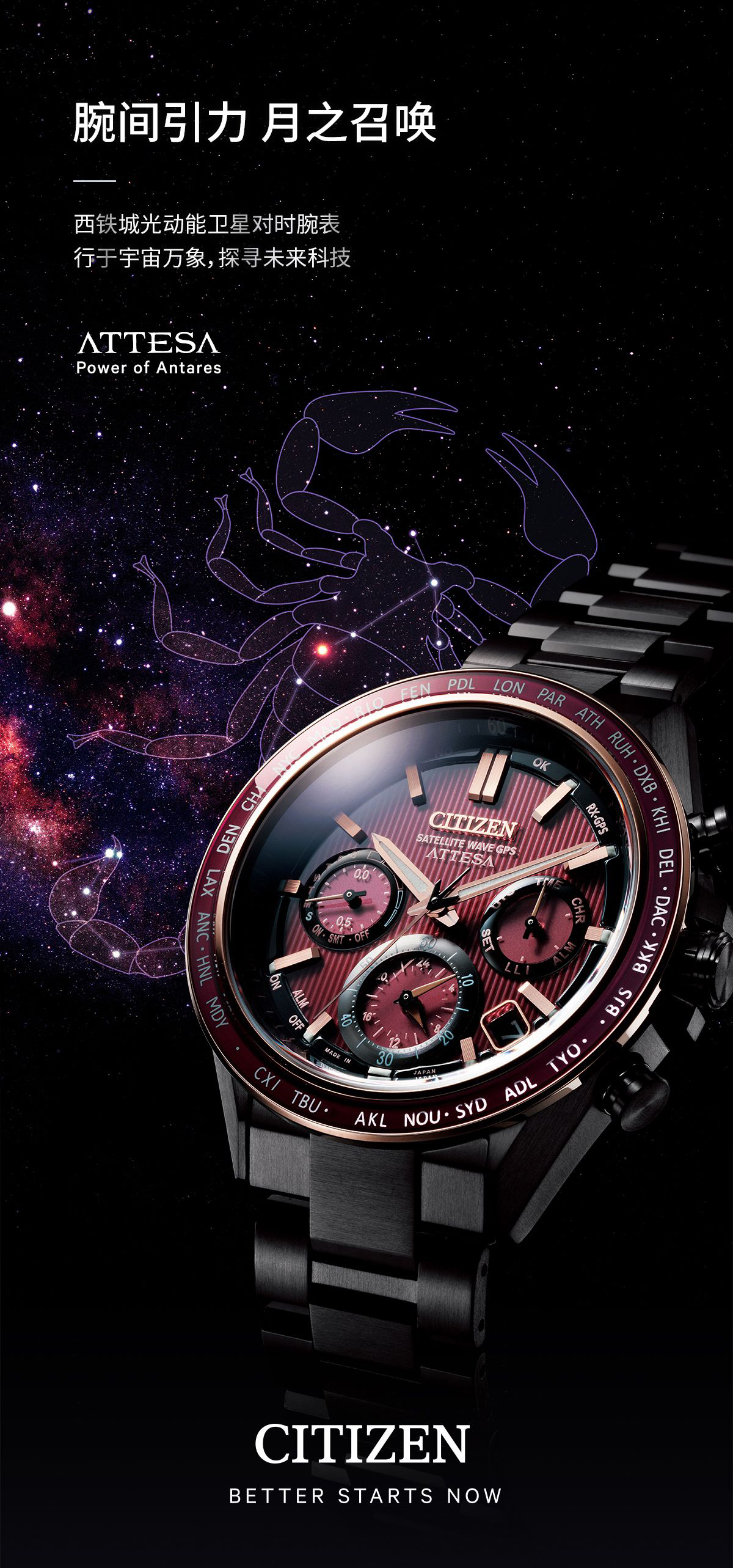 西铁城/CITIZEN卫星对时光动能舒博钛ATTESA系列商务男士手表CC4056-62W