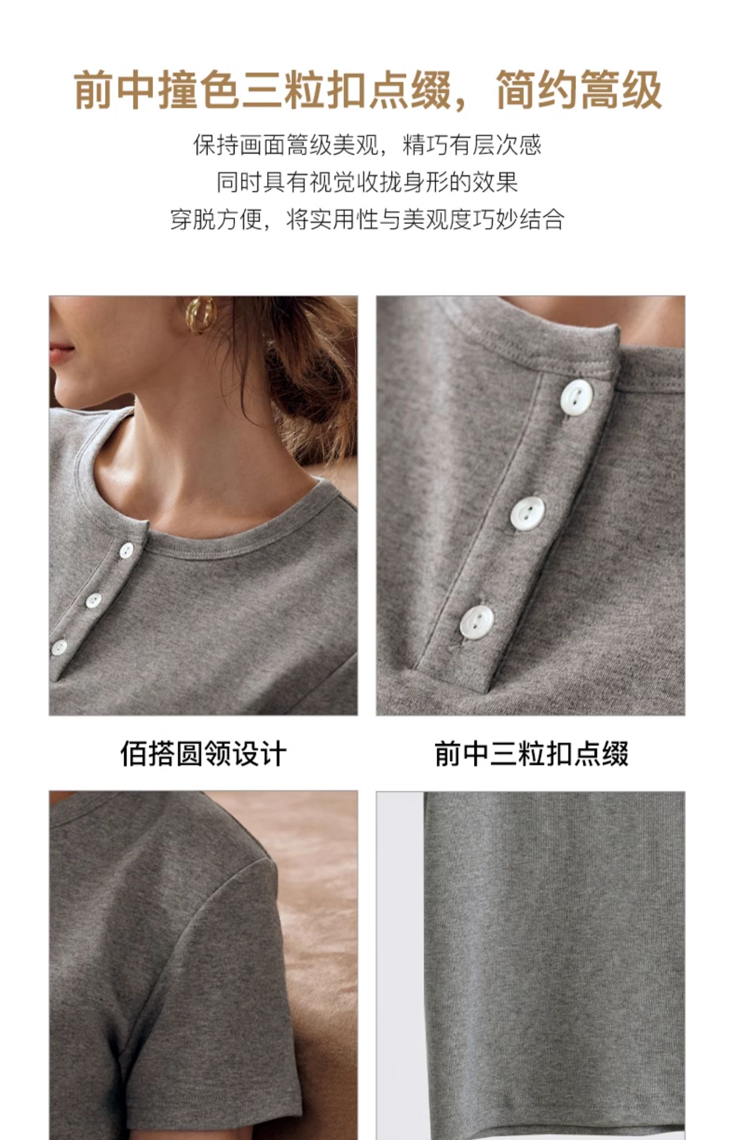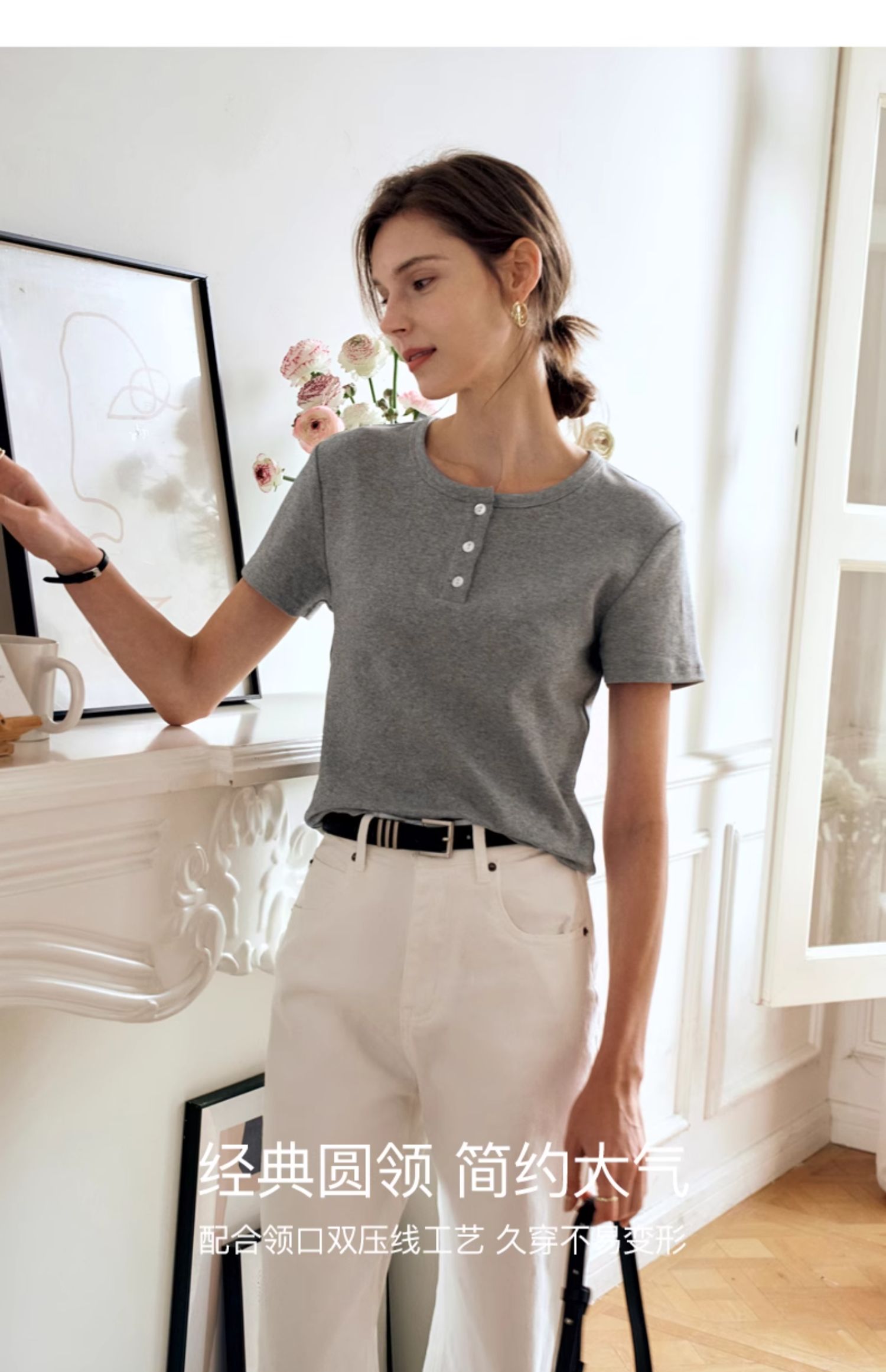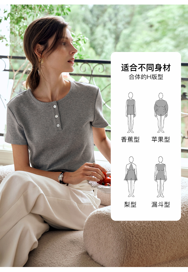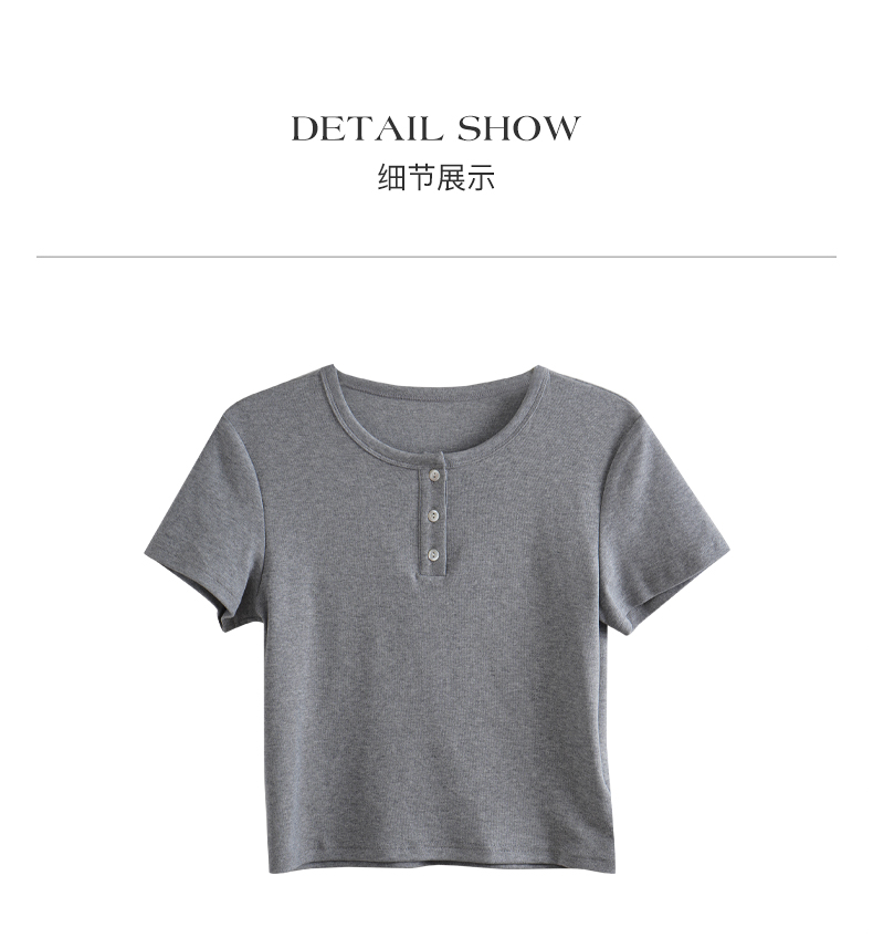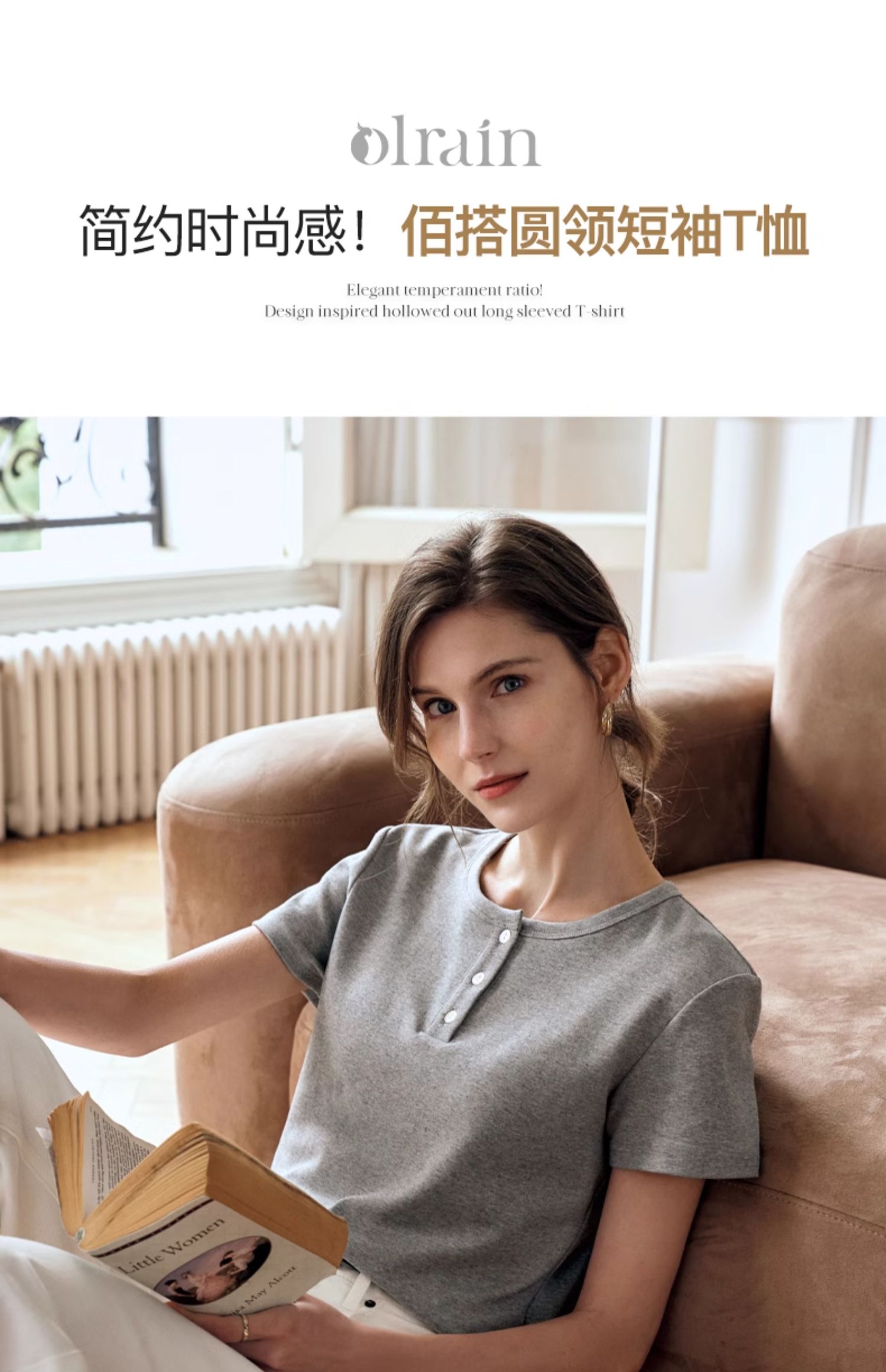 OLrain欧芮儿灰色短袖T恤女夏季2024年新款简约百搭时髦圆领上衣