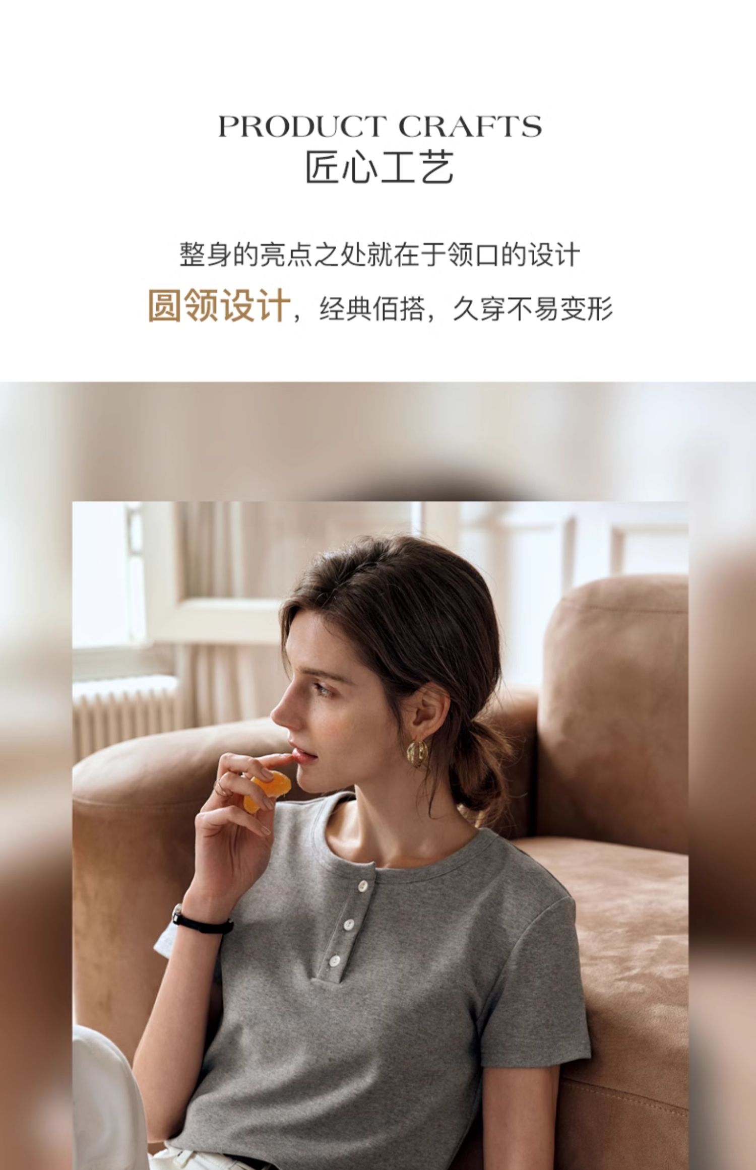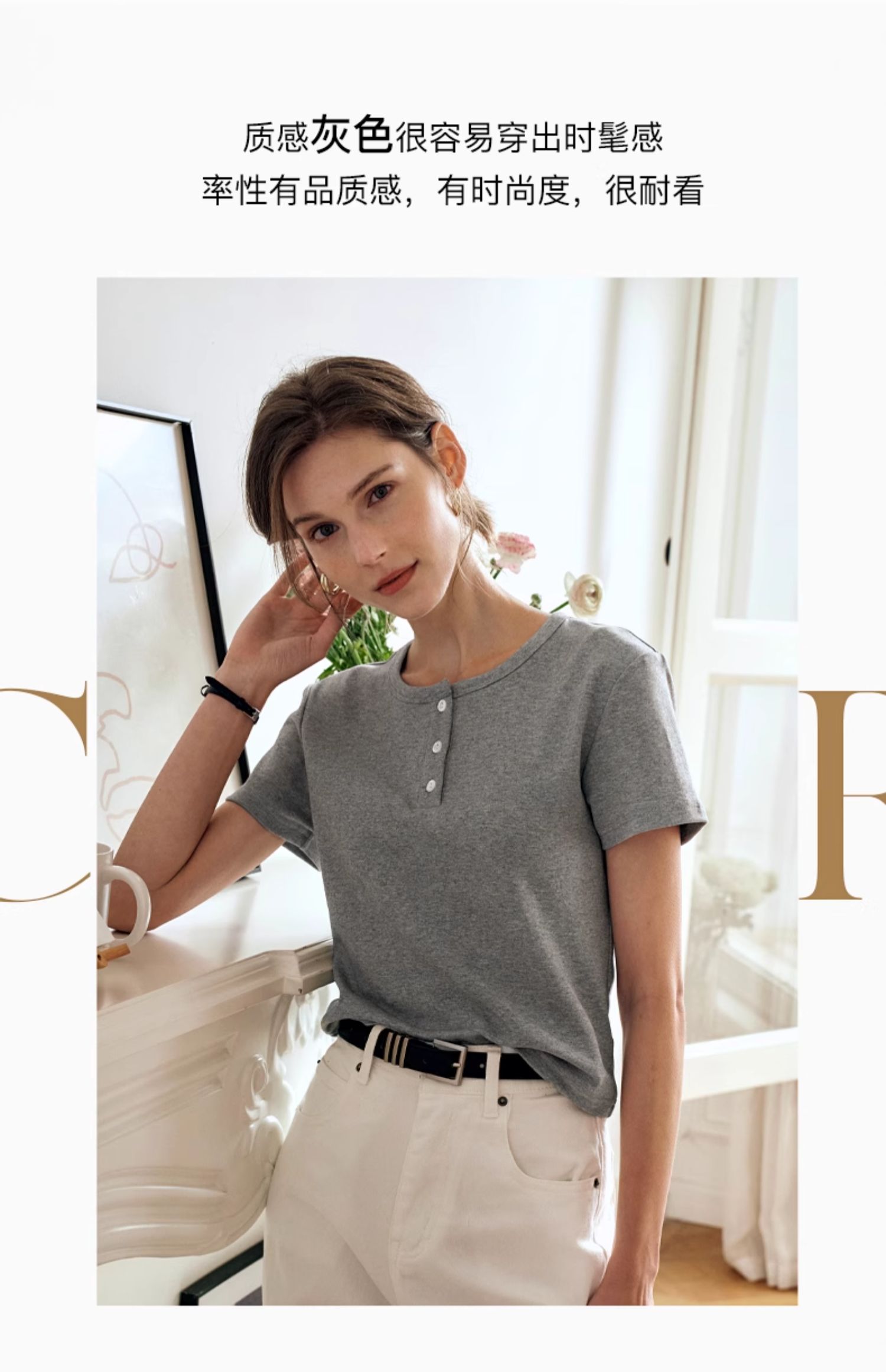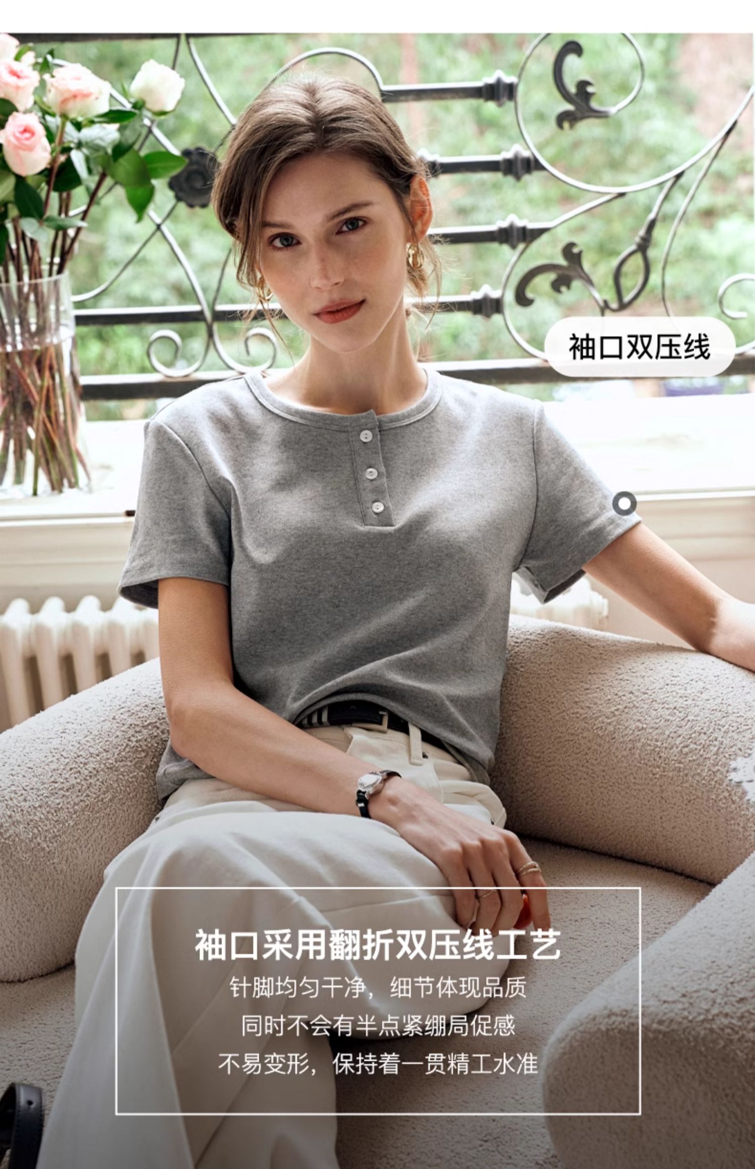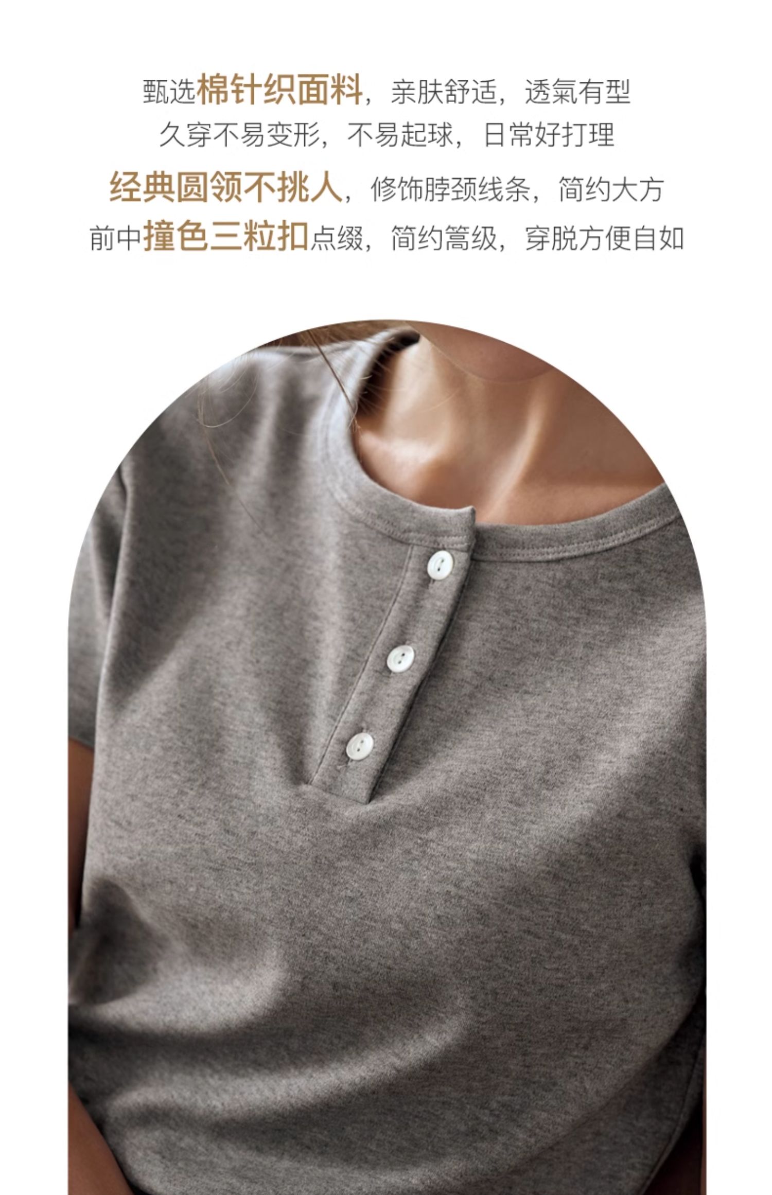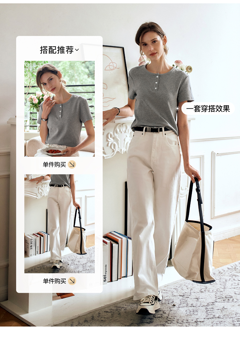 OLrain欧芮儿灰色短袖T恤女夏季2024年新款简约百搭时髦圆领上衣