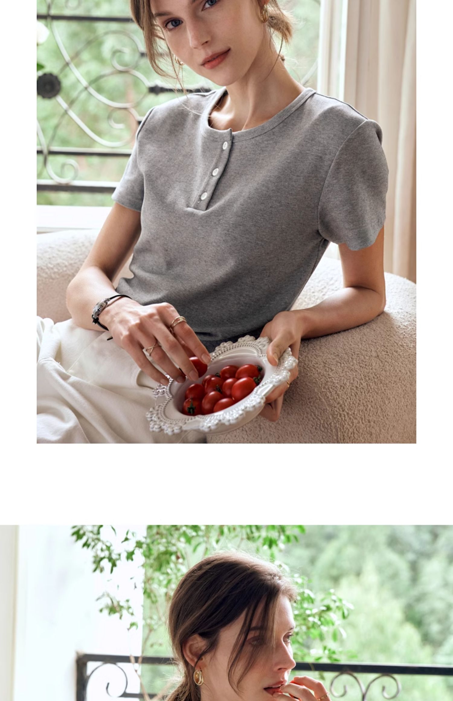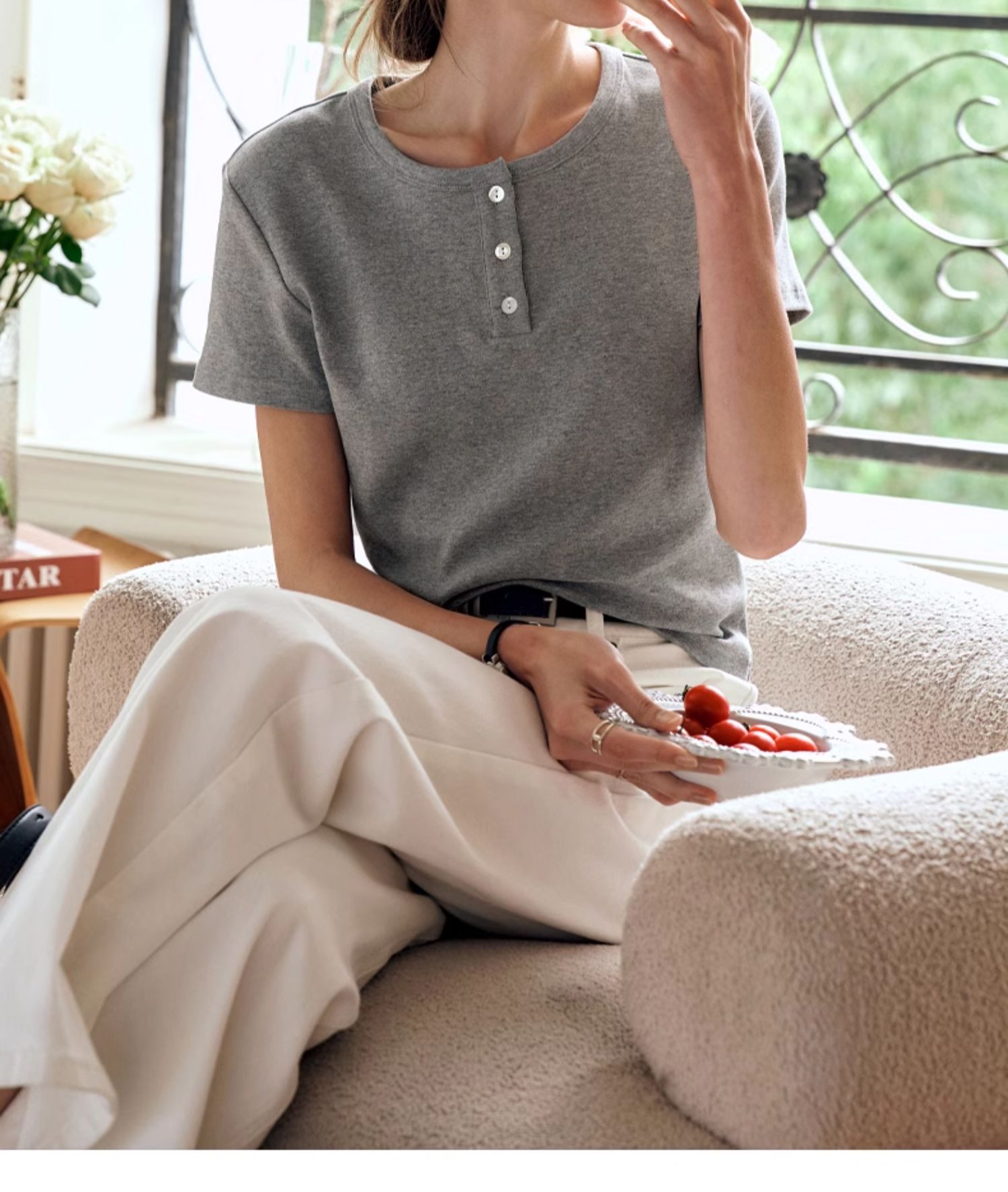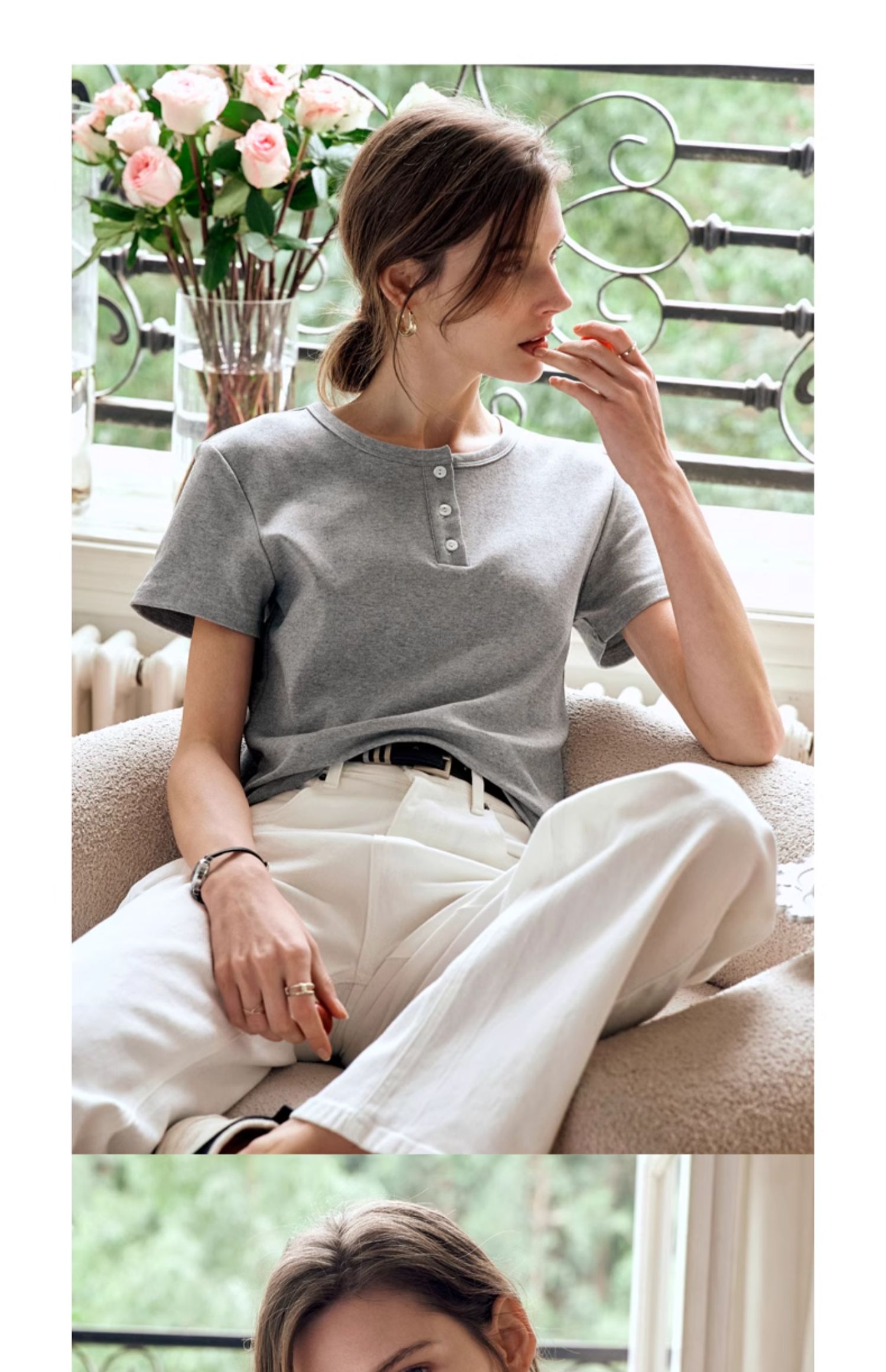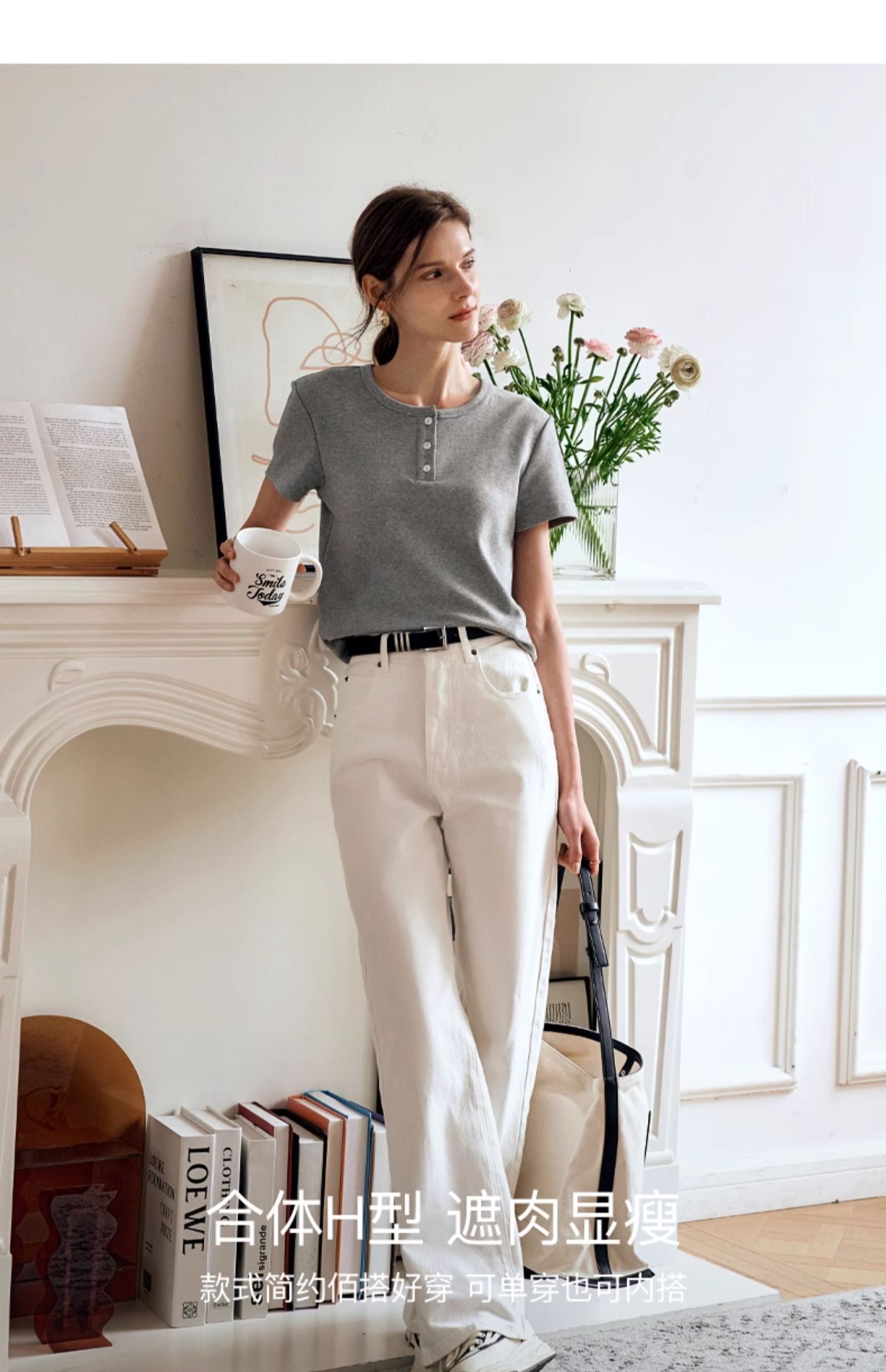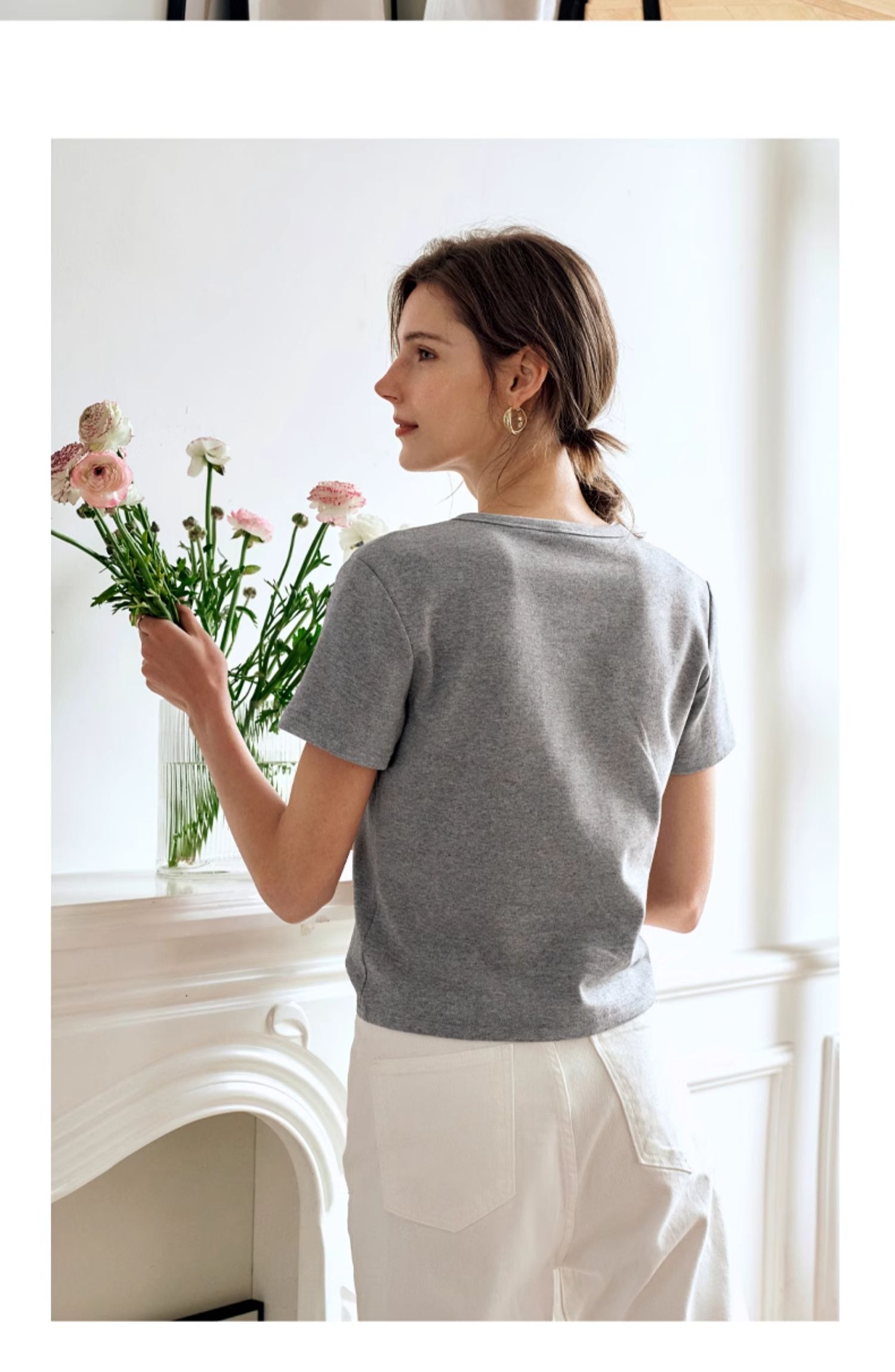 OLrain欧芮儿灰色短袖T恤女夏季2024年新款简约百搭时髦圆领上衣