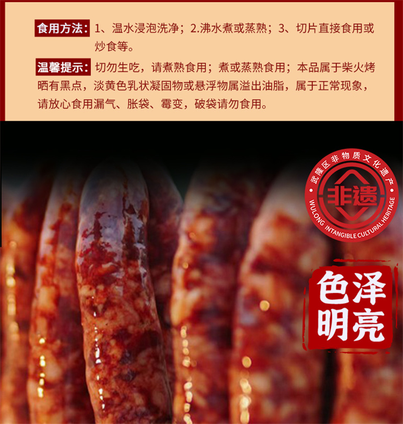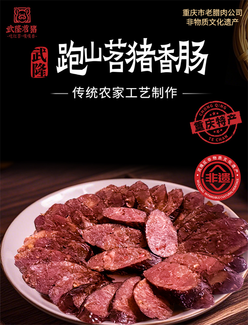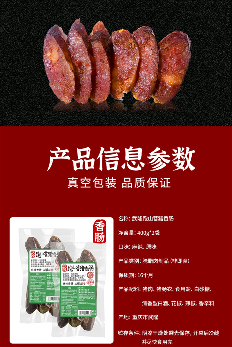 苕猪武隆跑山苕猪香肠 400克*2袋 重庆特产柴火烟熏麻辣原味农家风味香肠