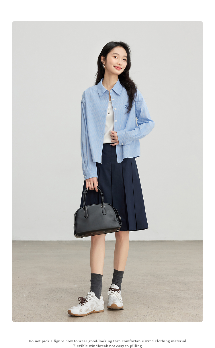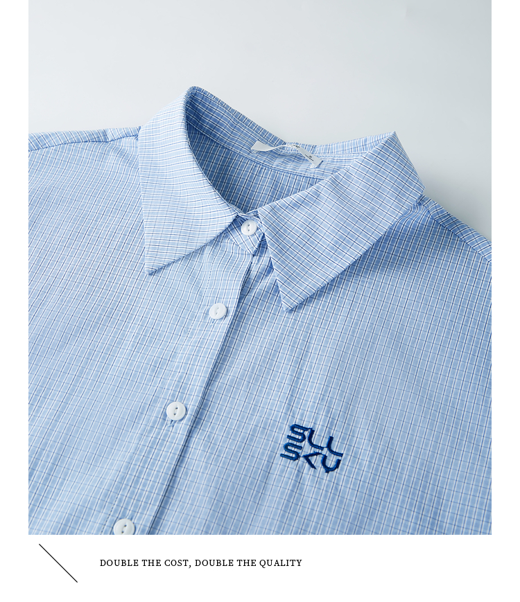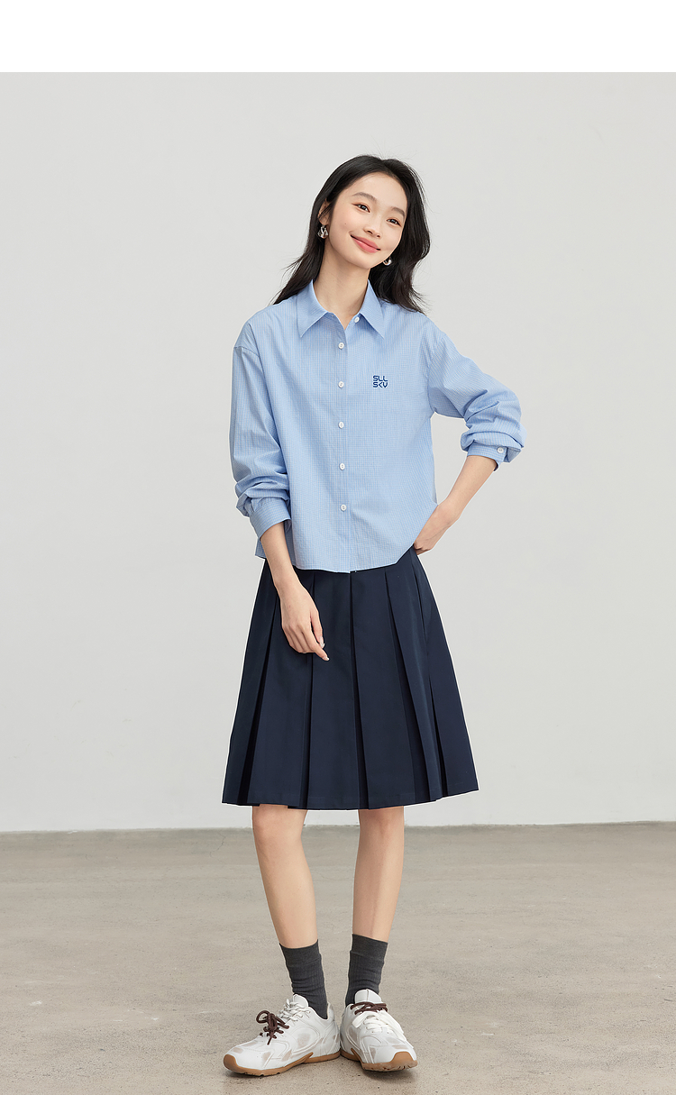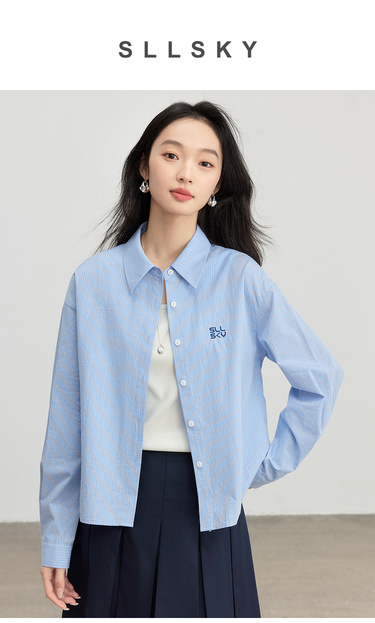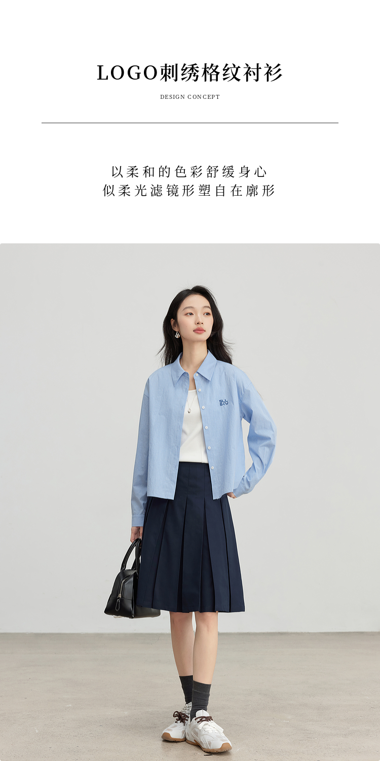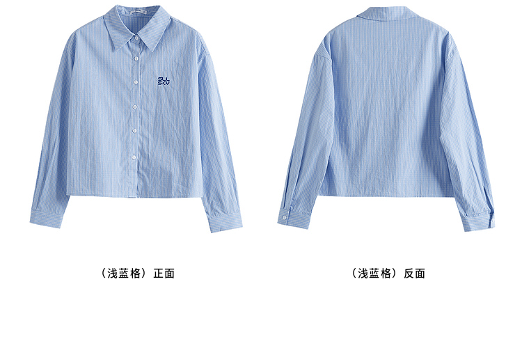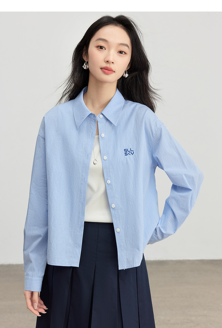 【专属特价】熙世界休闲宽松格纹衬衫女长袖2025年春季新款设计感LOGO刺绣上衣