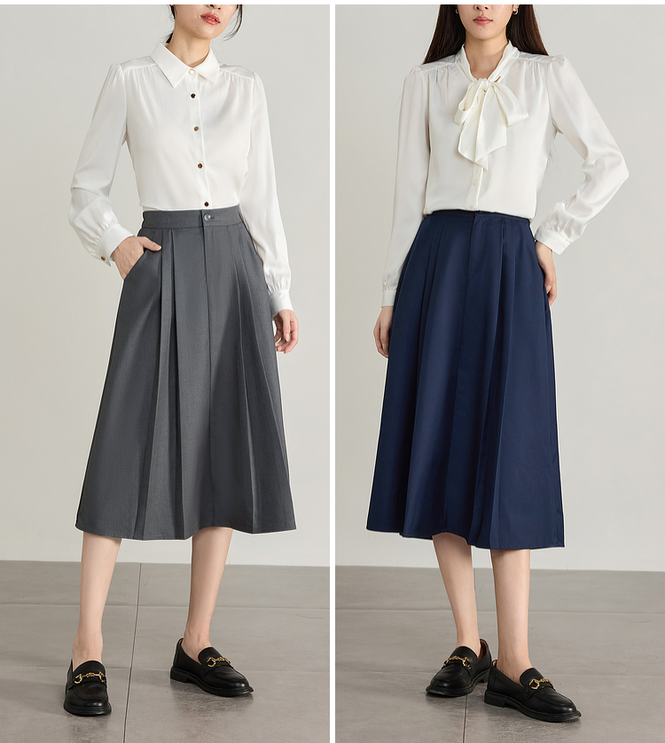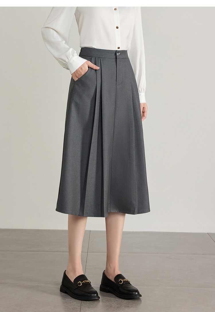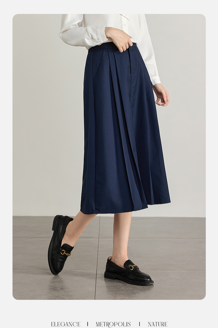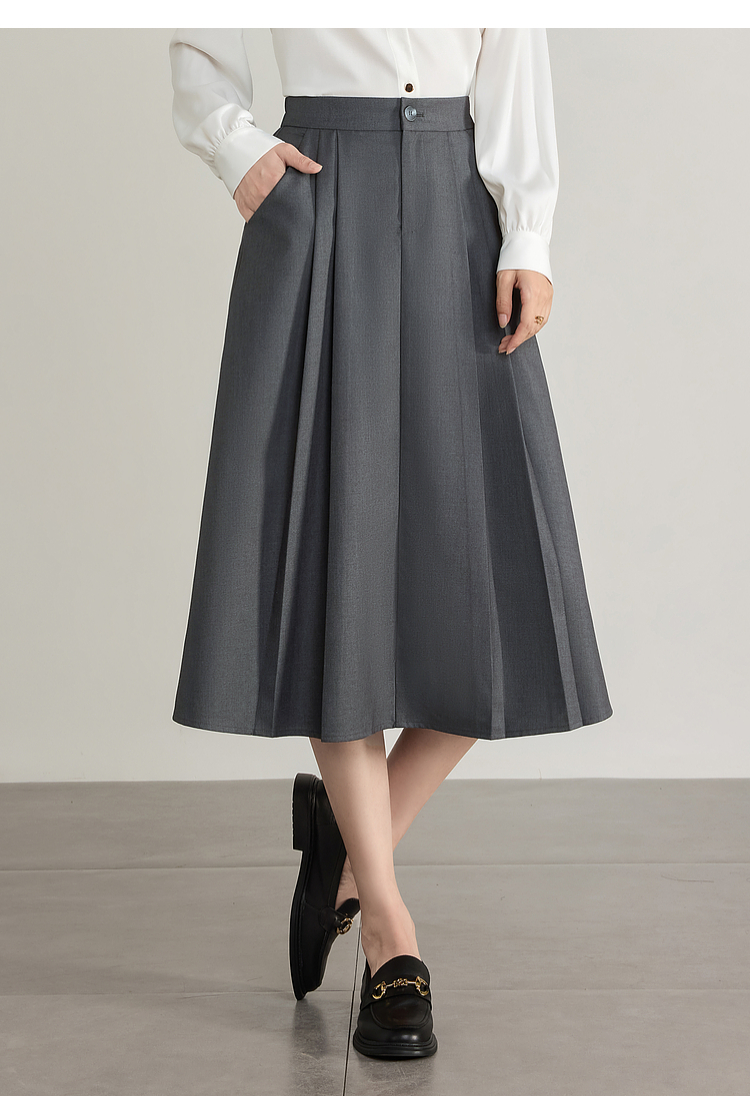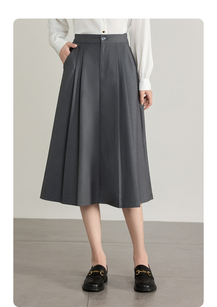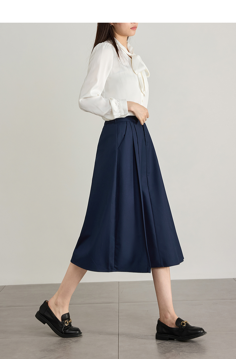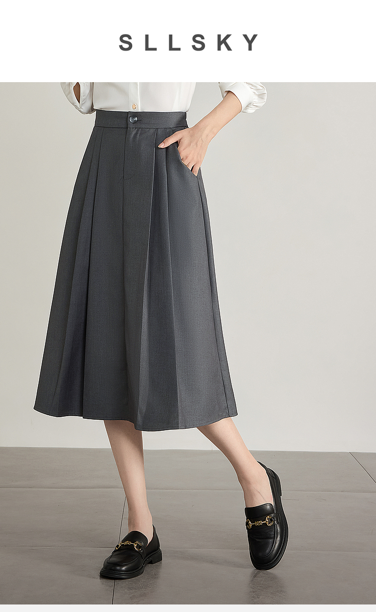 【专属特价】熙世界气质赫本风西装半身裙2025秋季新款通勤垂感百褶a字伞裙