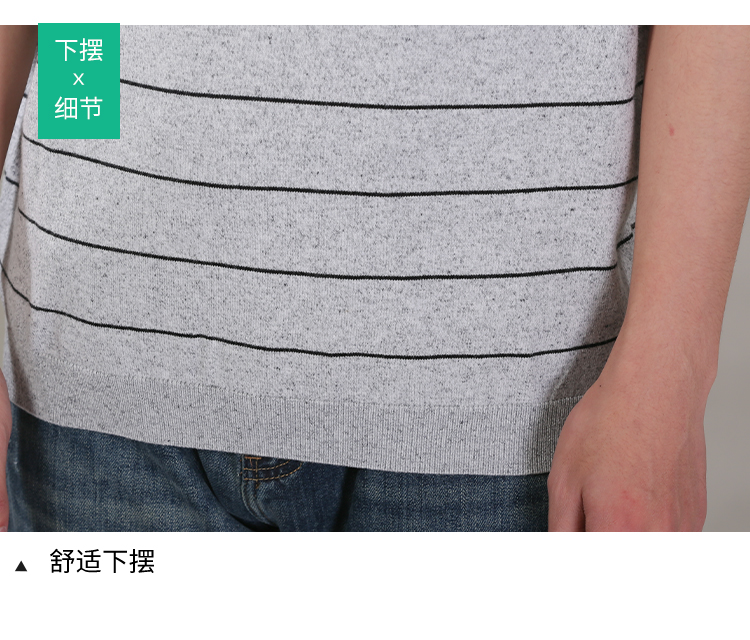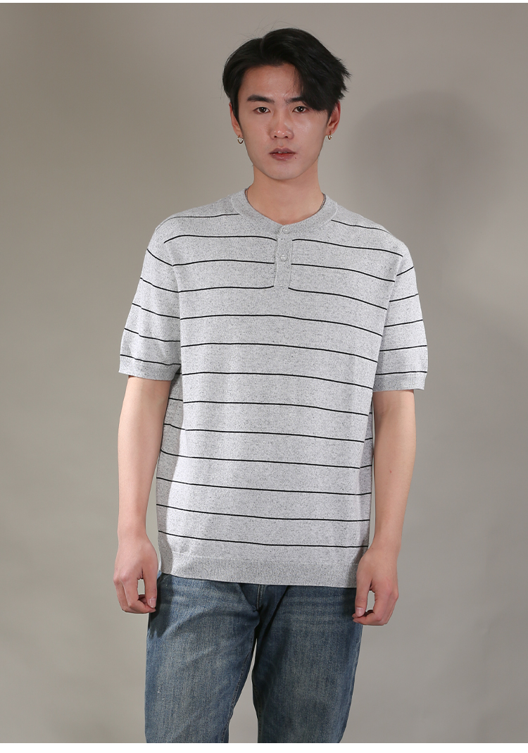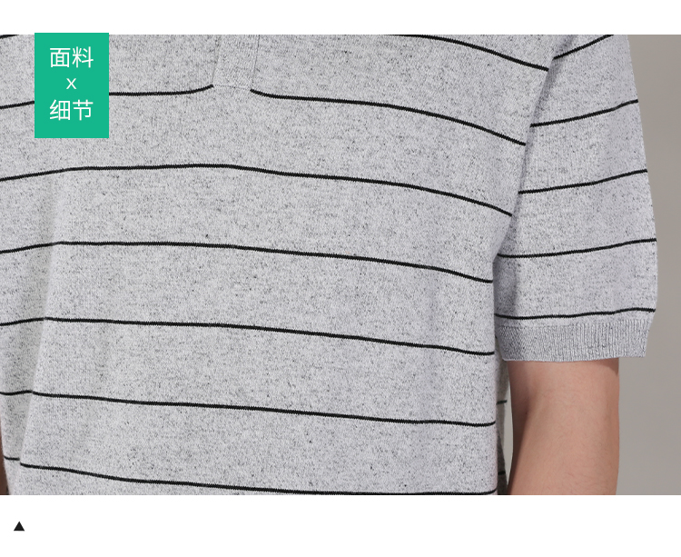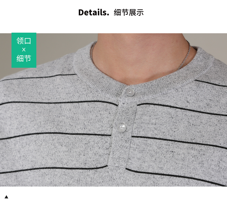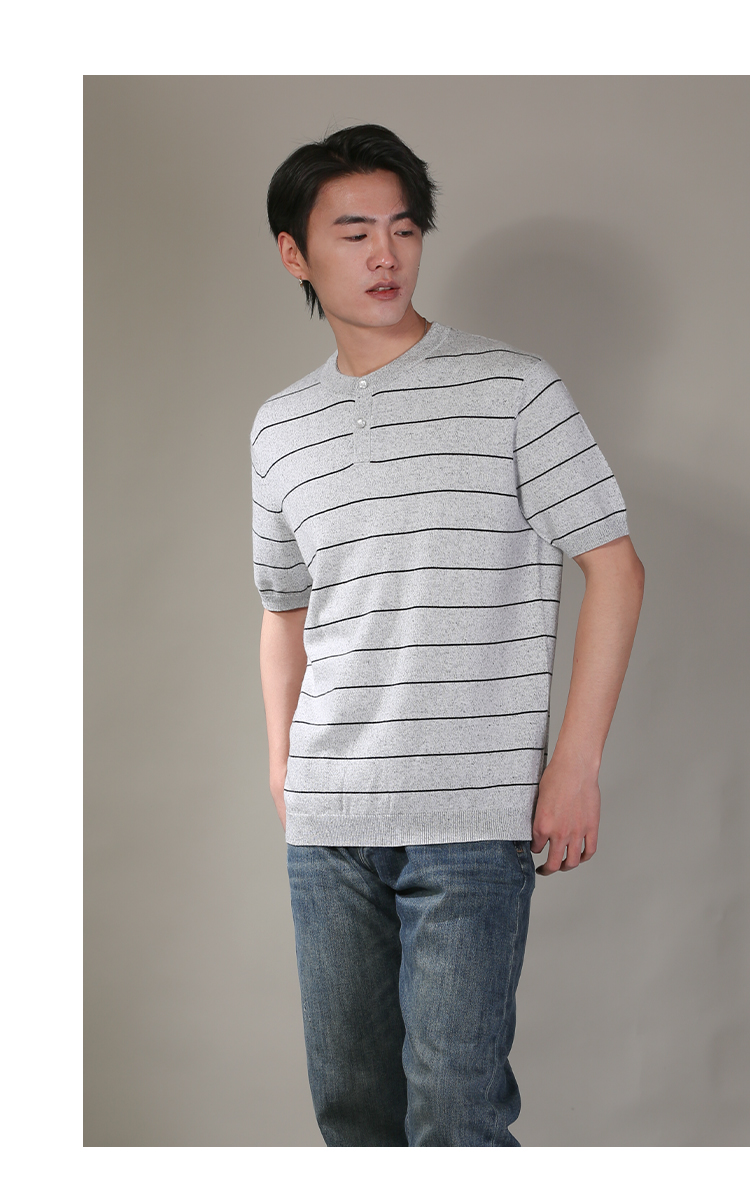 DRONKOO 2026 圆领开两粒扣细宽条纹花纱修身短袖薄毛衣