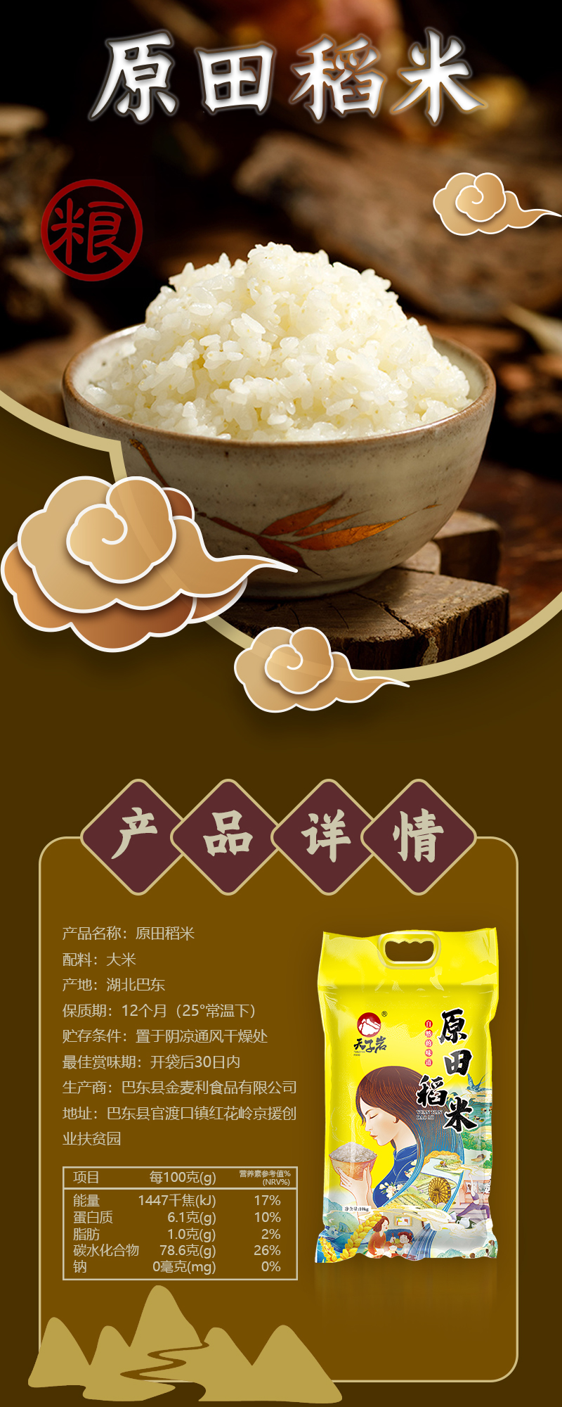 巴东天子岩原田稻米真空包装10kg