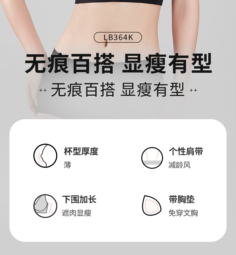 都市丽人Vbra内衣无尺码薄背心式泳布文胸无排扣无钢圈LB364K
