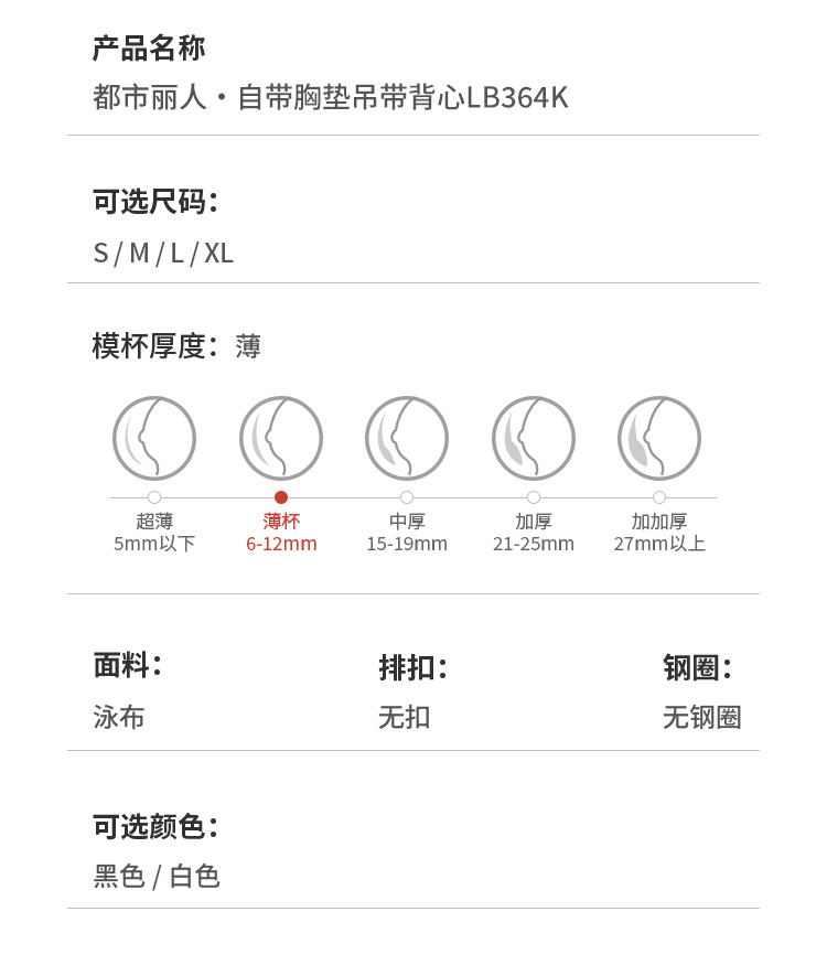 都市丽人Vbra内衣无尺码中厚3/4杯泳布文胸无排扣无钢圈LB361K