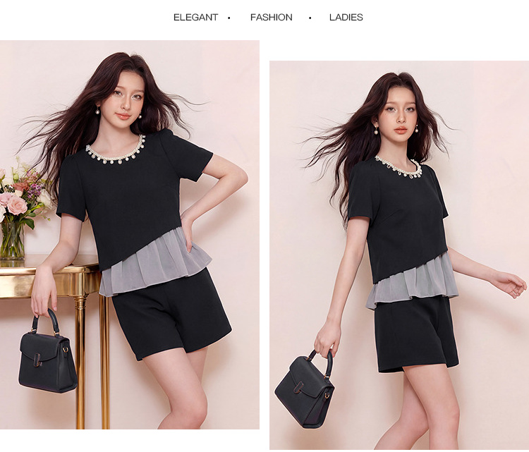 奢姿大码女装2026夏季网纱拼接圆领时尚两件套胖妹妹名媛风套装9962954525