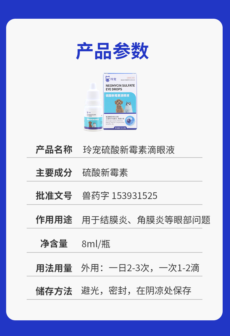 玲宠猫咪眼药水硫酸新霉素滴眼液狗狗眼睛发炎宠物结膜炎流泪眼药水