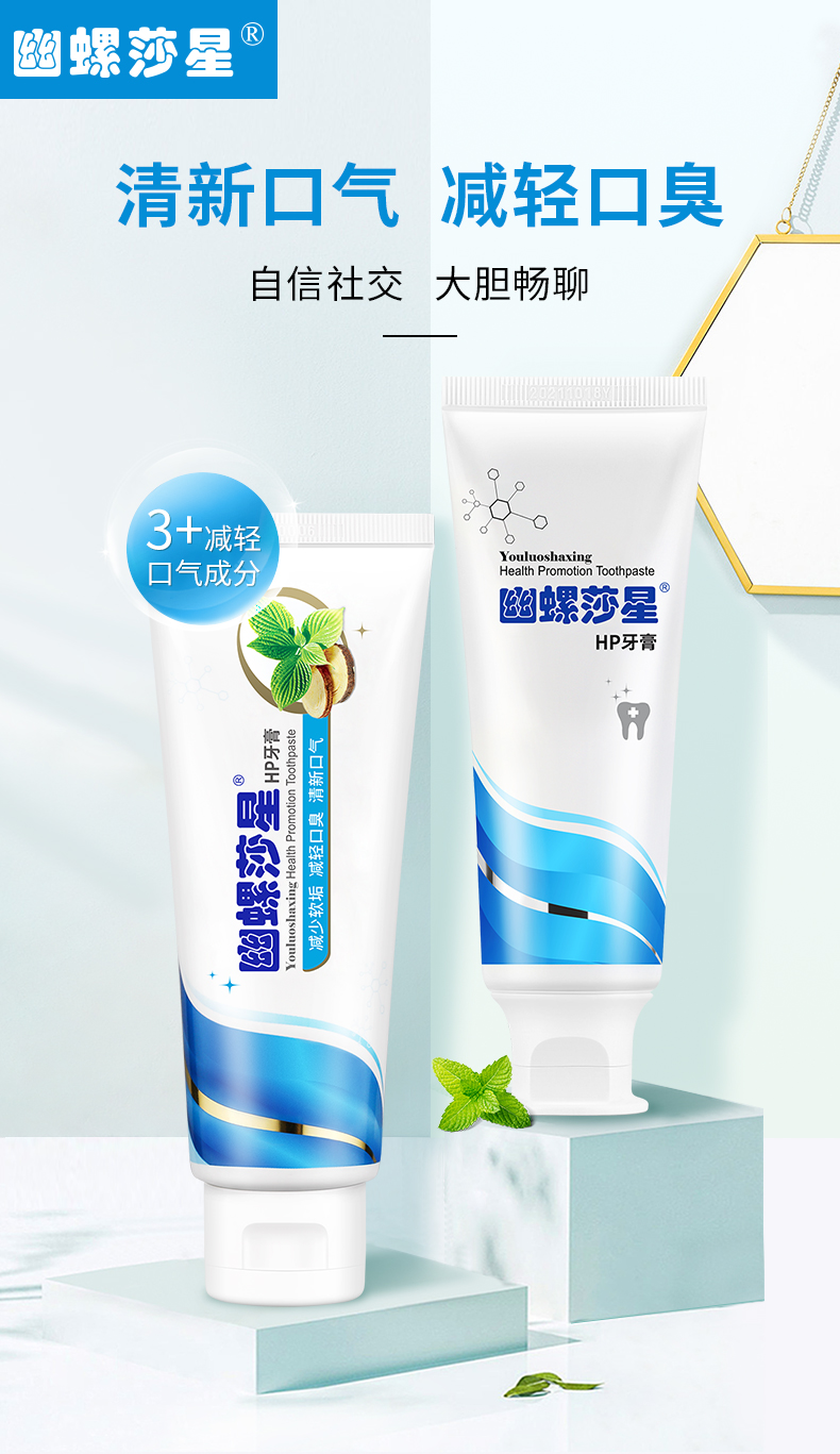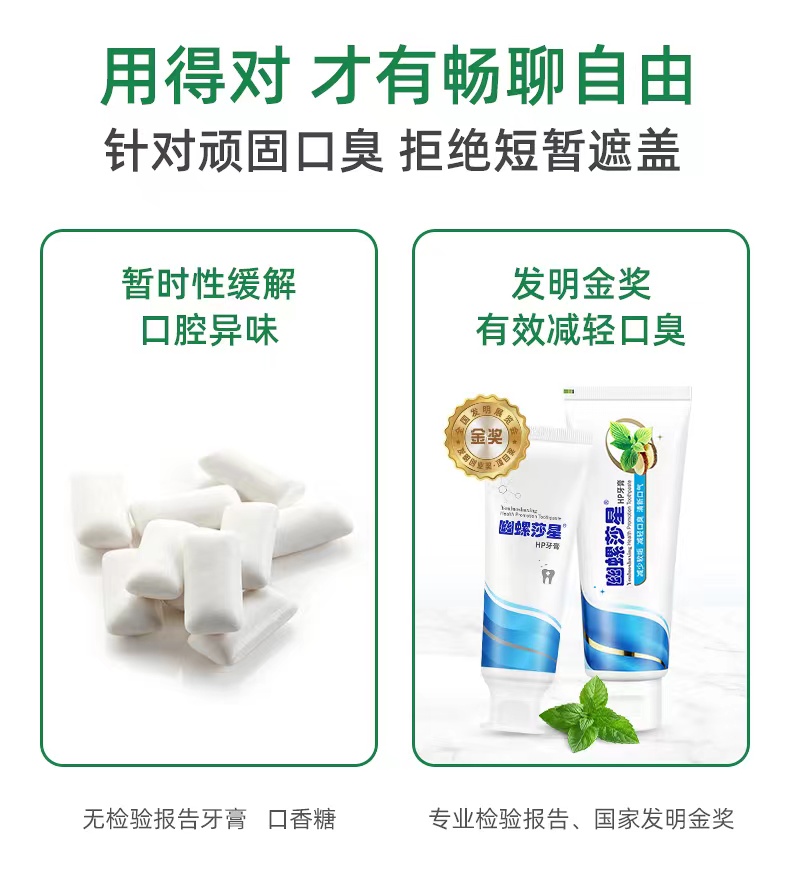 【幽螺莎星HP牙膏】清新口气抑菌,除幽门螺杆菌,除口臭!获国家发明专利,不含氟,让口腔洁净健康,孕妇儿童都可用!随机赠送牙刷或小牙膏!