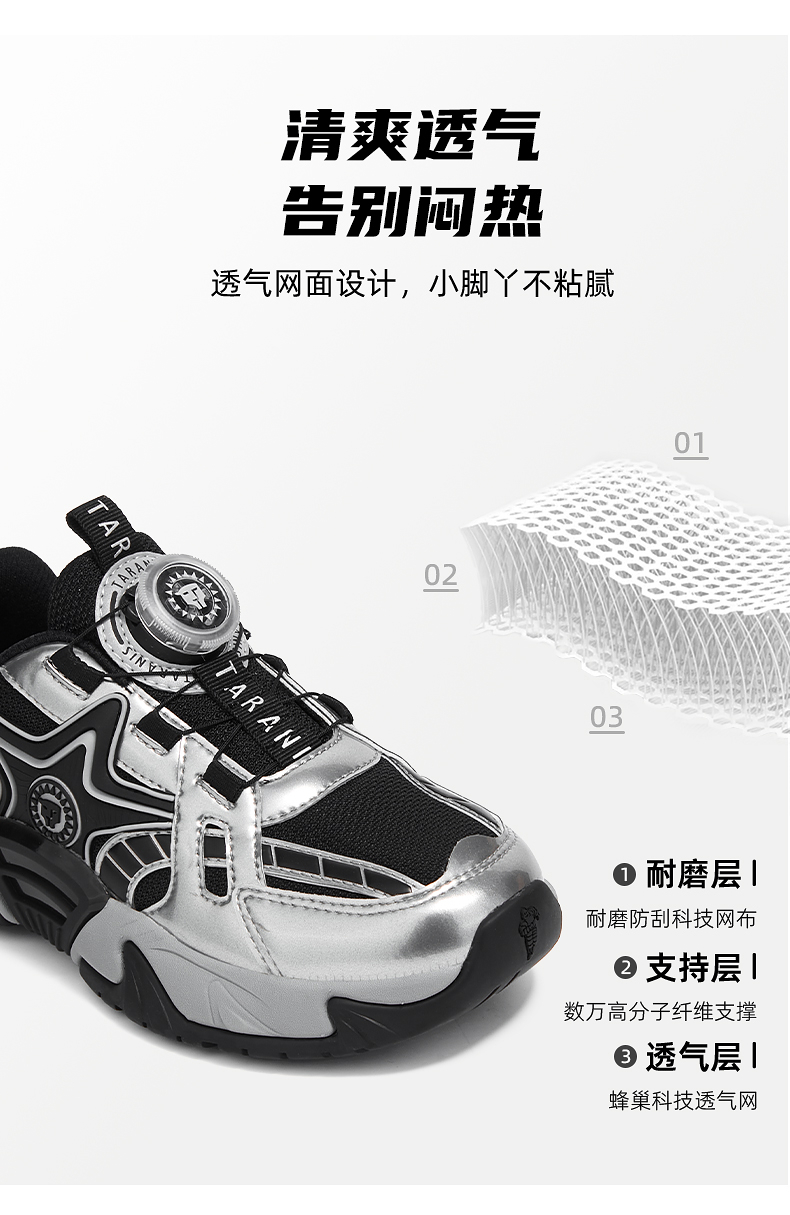 泰兰尼斯儿童运动鞋秋季新款运动鞋男童跑步鞋户外鞋透气儿童鞋子 T01D5C6807