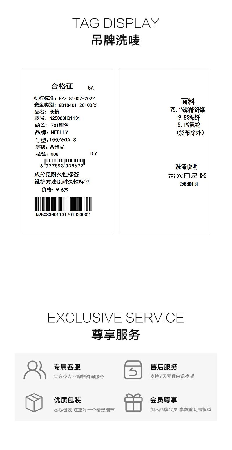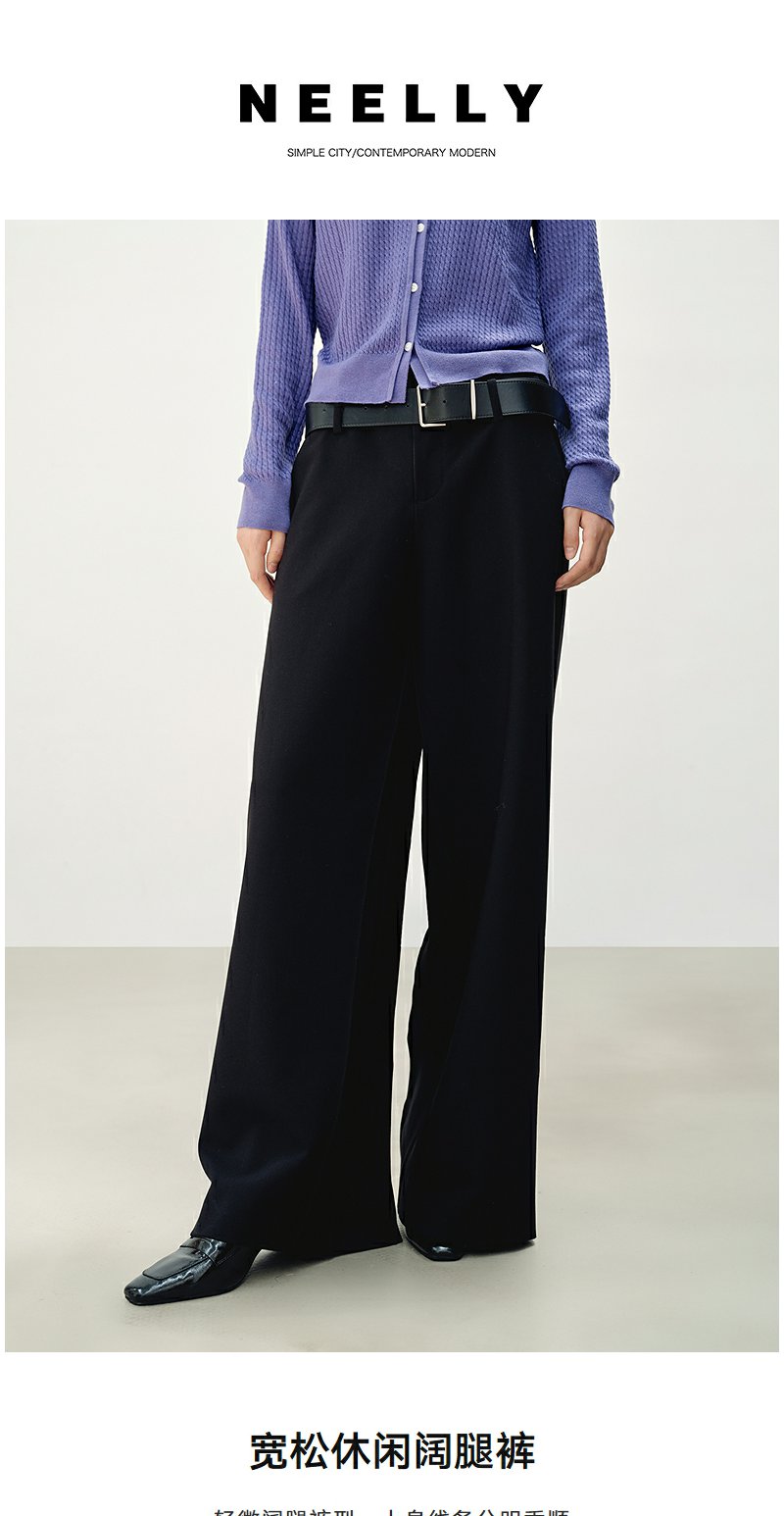 NEELLY纳俪商场同款秋季新款宽松慵懒阔腿裤女垂感百搭直筒长裤N25083H01131