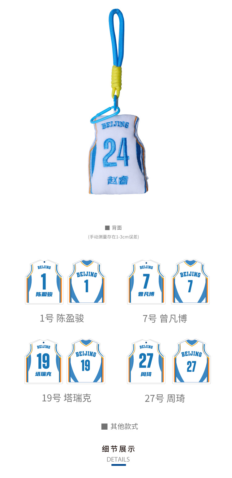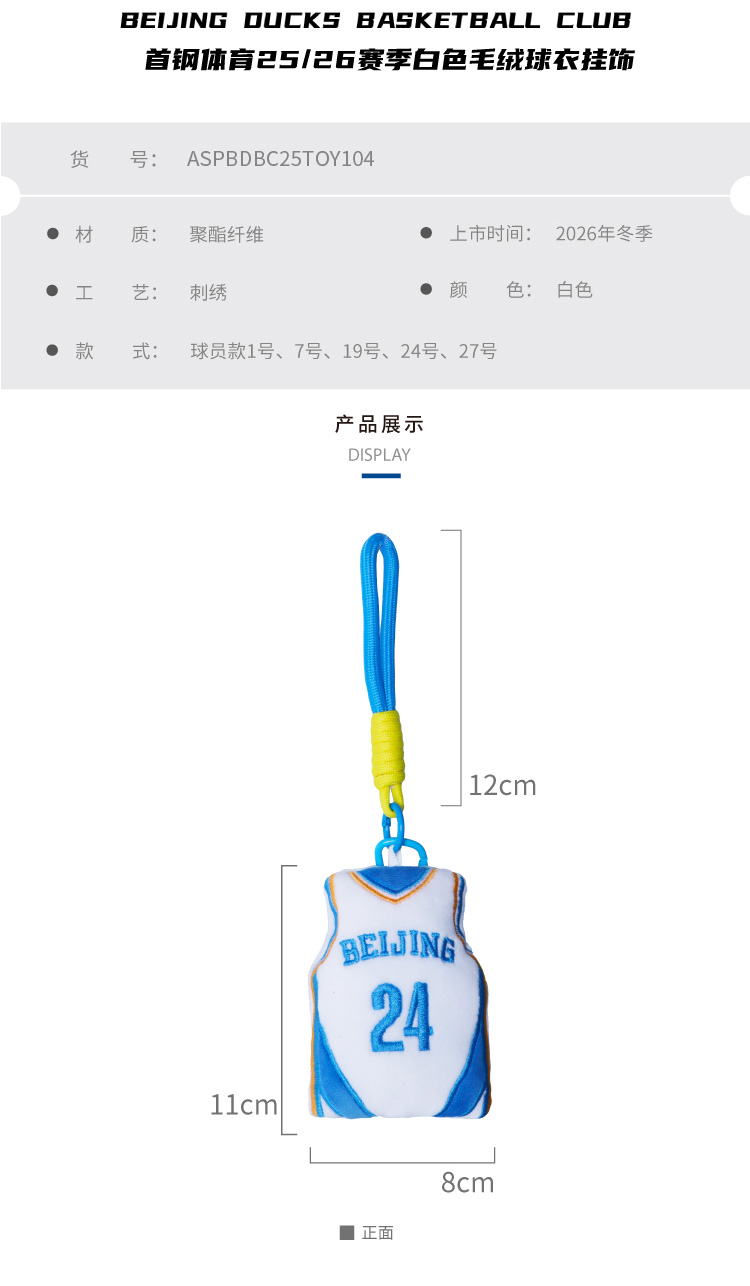 【官方正版】北京首钢 | 白色毛绒球衣挂饰男篮球迷挂件赵睿