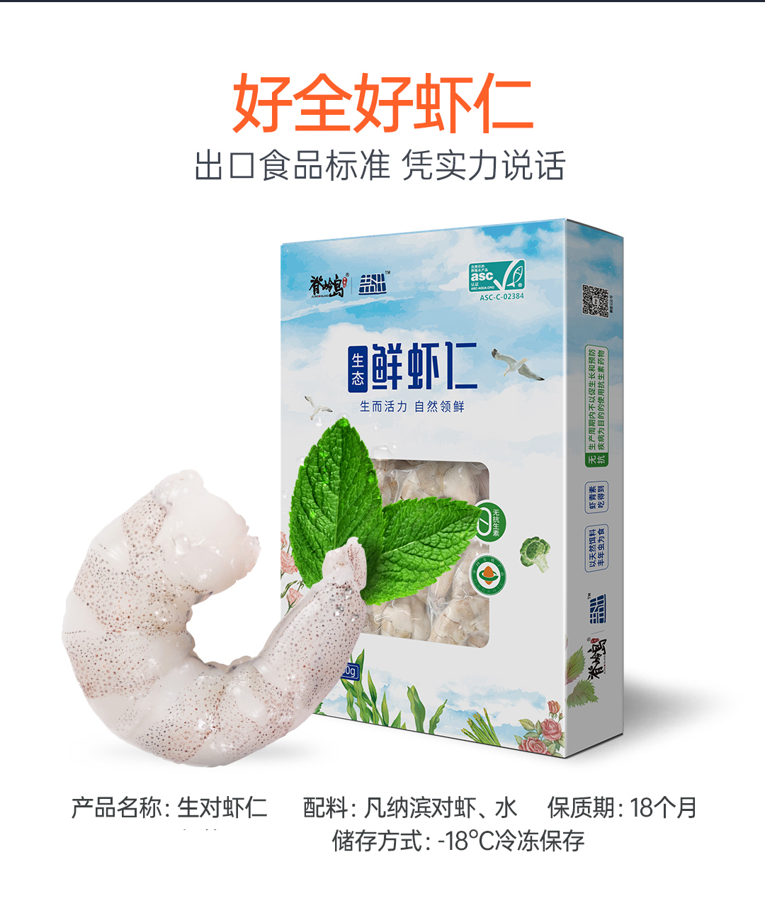 【脊岭岛有机生虾仁】无抗无添加 低脂 低钠 高蛋白 200g/2盒