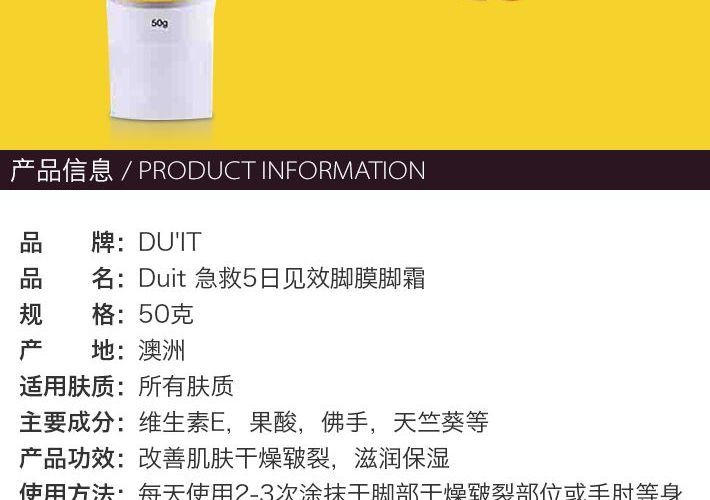 【保税仓】秋冬DU'IT脚膜 嫩脚后跟干裂老茧护脚霜膏50g