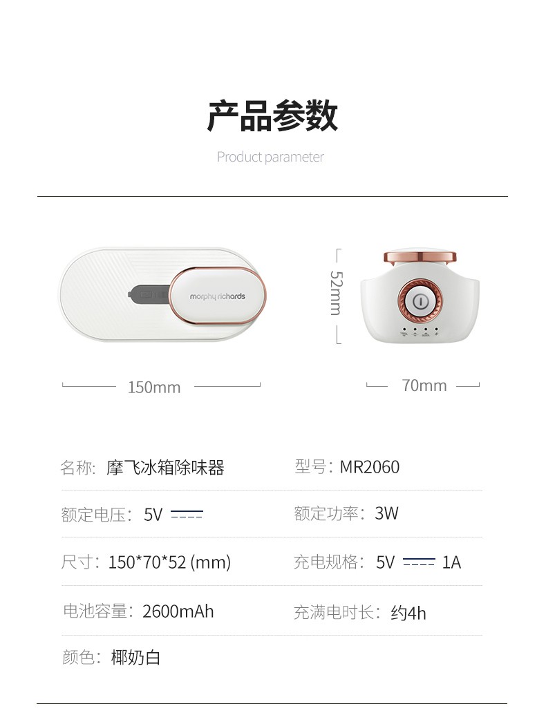 【授权商品】摩飞电器(Morphyrichards) 冰箱除味器祛味空气净化器无耗材除臭剂MR2060 标配