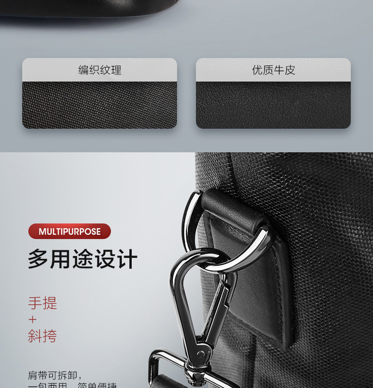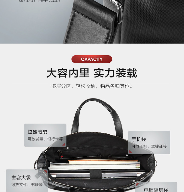 新秀丽公文包 皮革拼接 复古设计 沉稳中凸显个性 多用途,可手提可斜挎 BW3*007