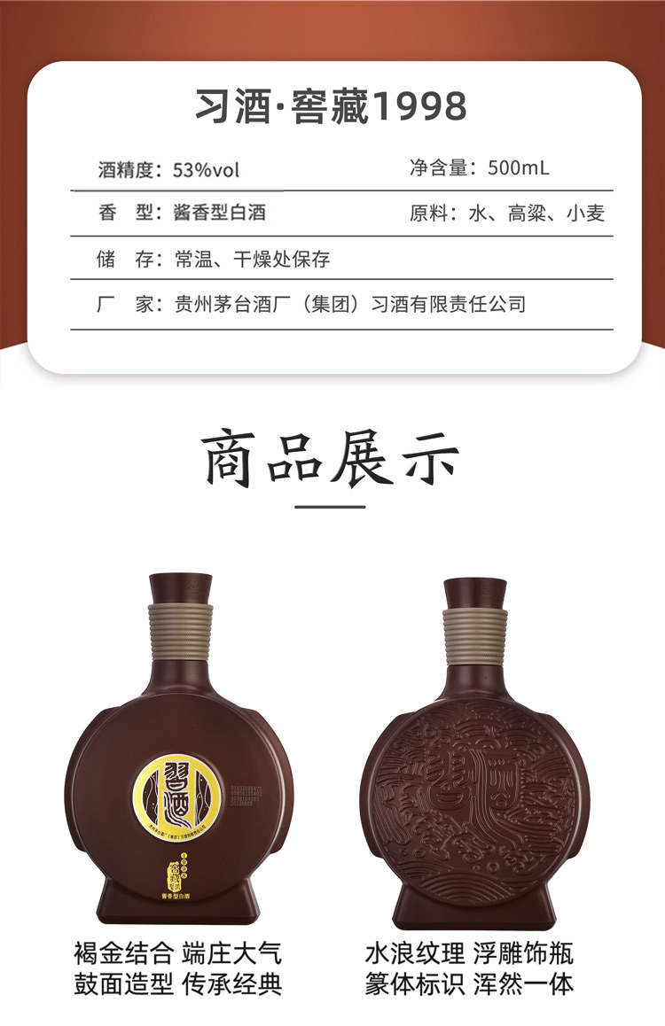 【单瓶】习酒1998(礼盒装)500ml 53%Vol