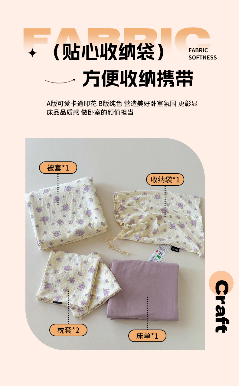 【99元起】【品牌直发】加倍生活 A类水洗棉云感棉四件套 热款韩版小布袋古法水洗五件套