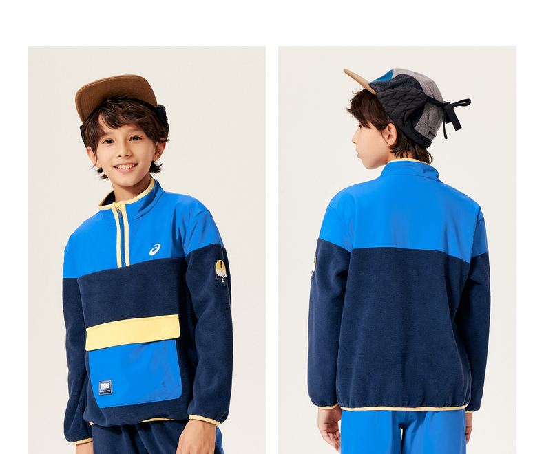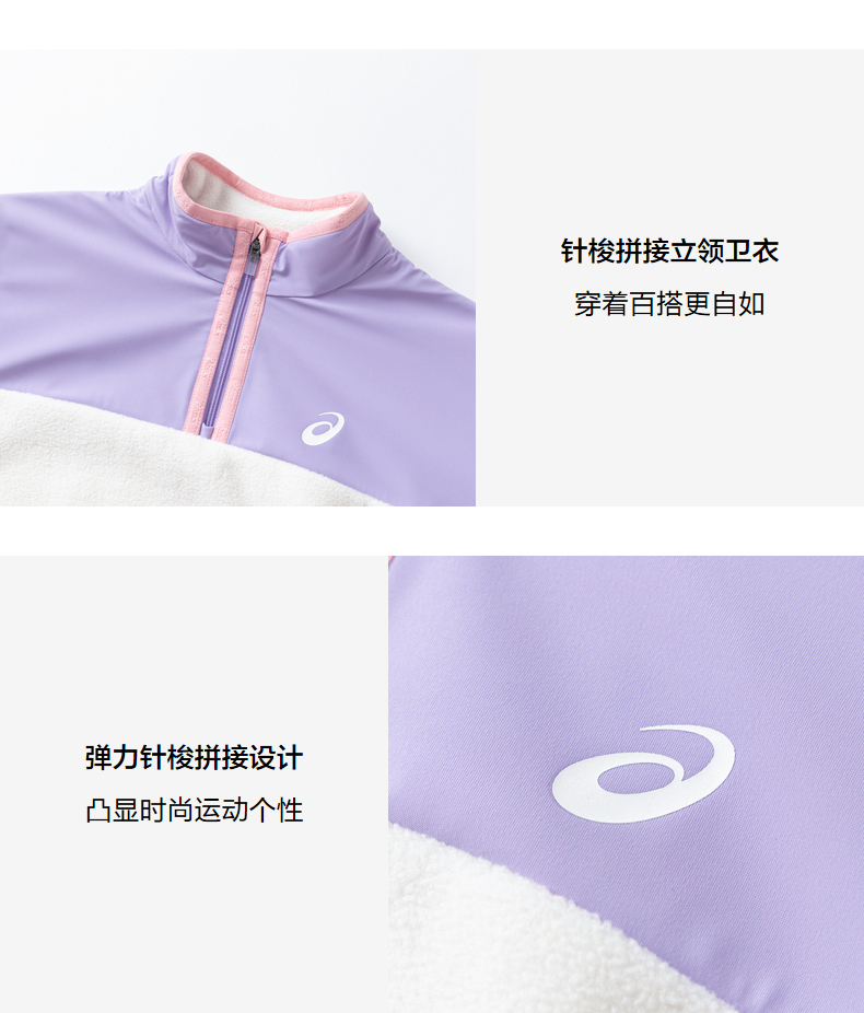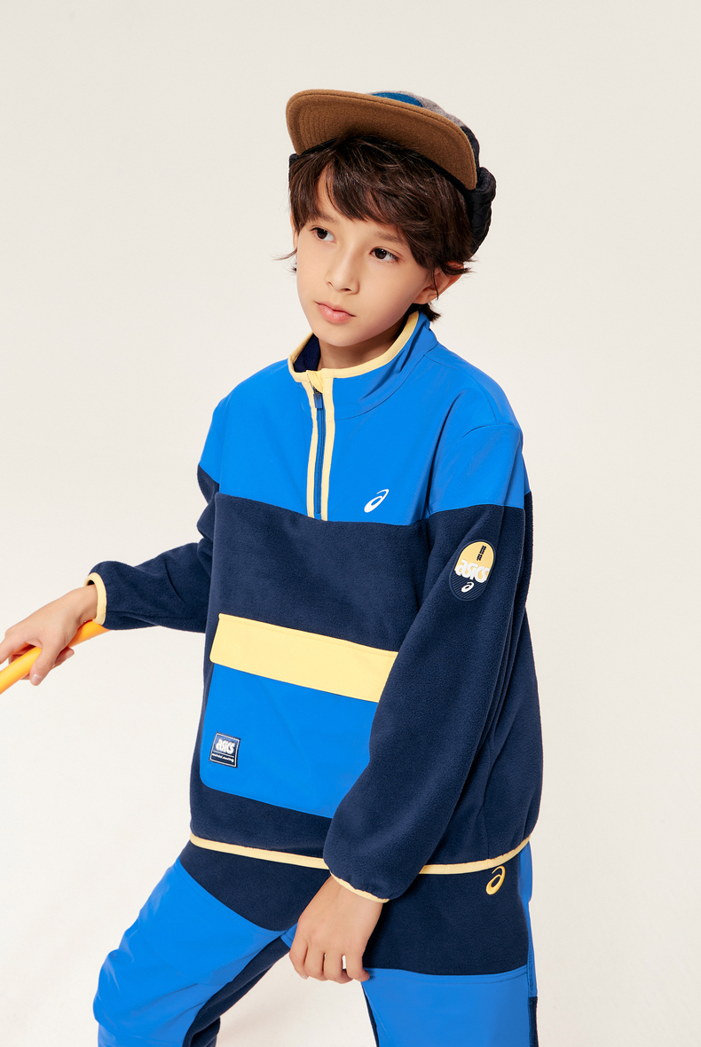 ASICS/亚瑟士童装2023年秋冬男女儿童宽松时尚保暖针织圆领卫衣