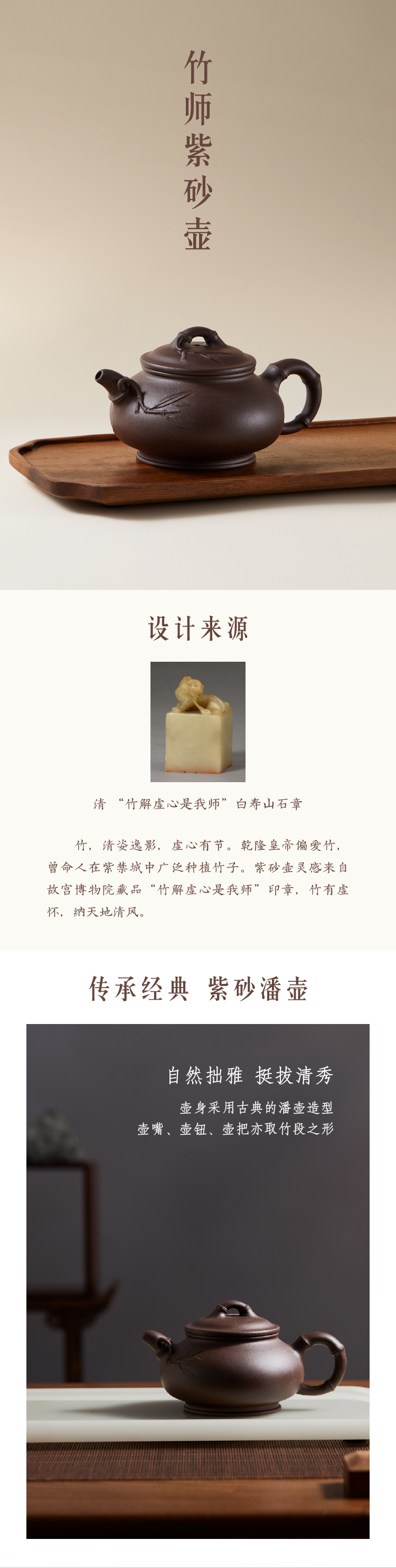 【故宫礼品】竹师紫砂壶节节高升茶壶博物馆文创乔迁生日中秋节礼物