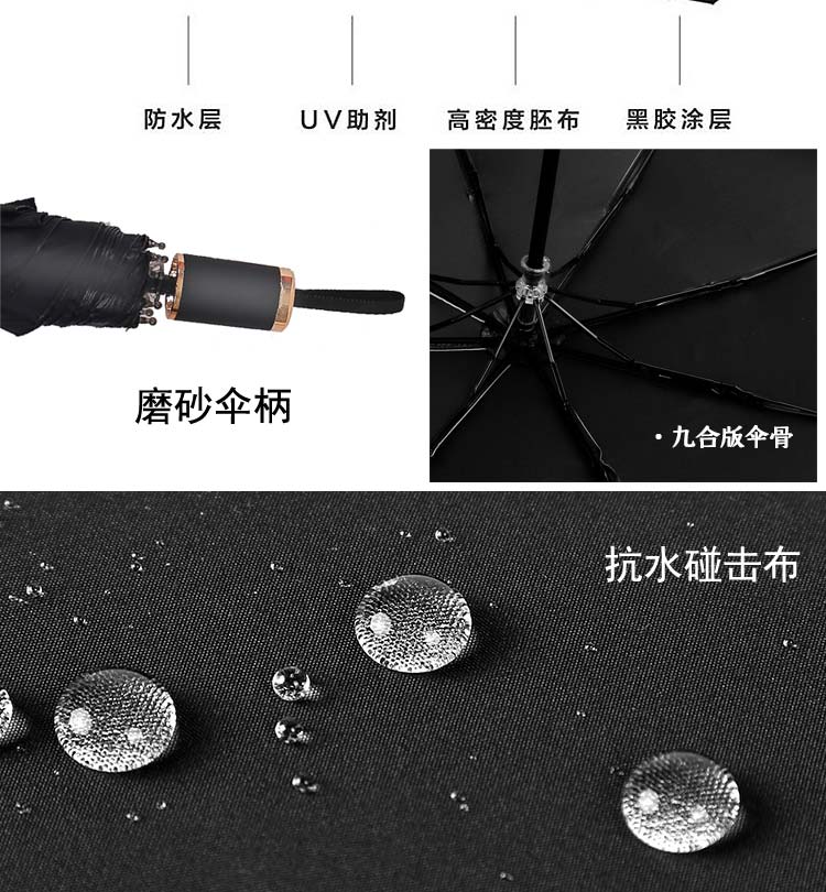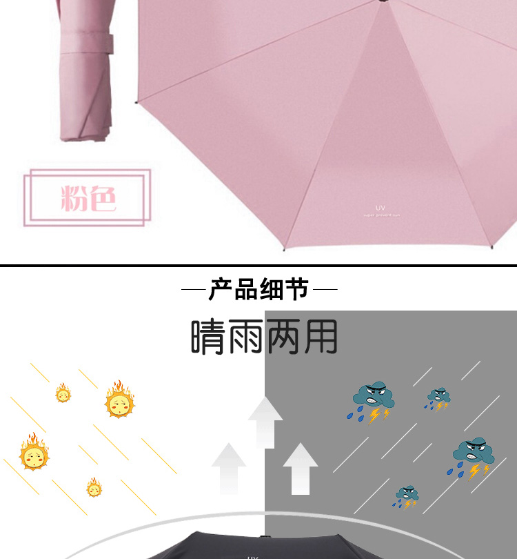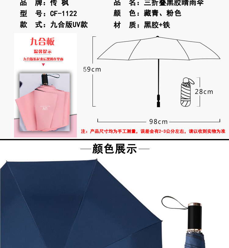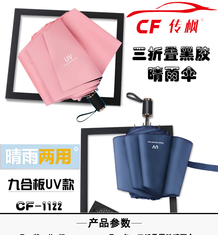 传枫 UV晴雨伞 三折叠手动伞 黑胶防晒 晴雨两用伞 CF-1122