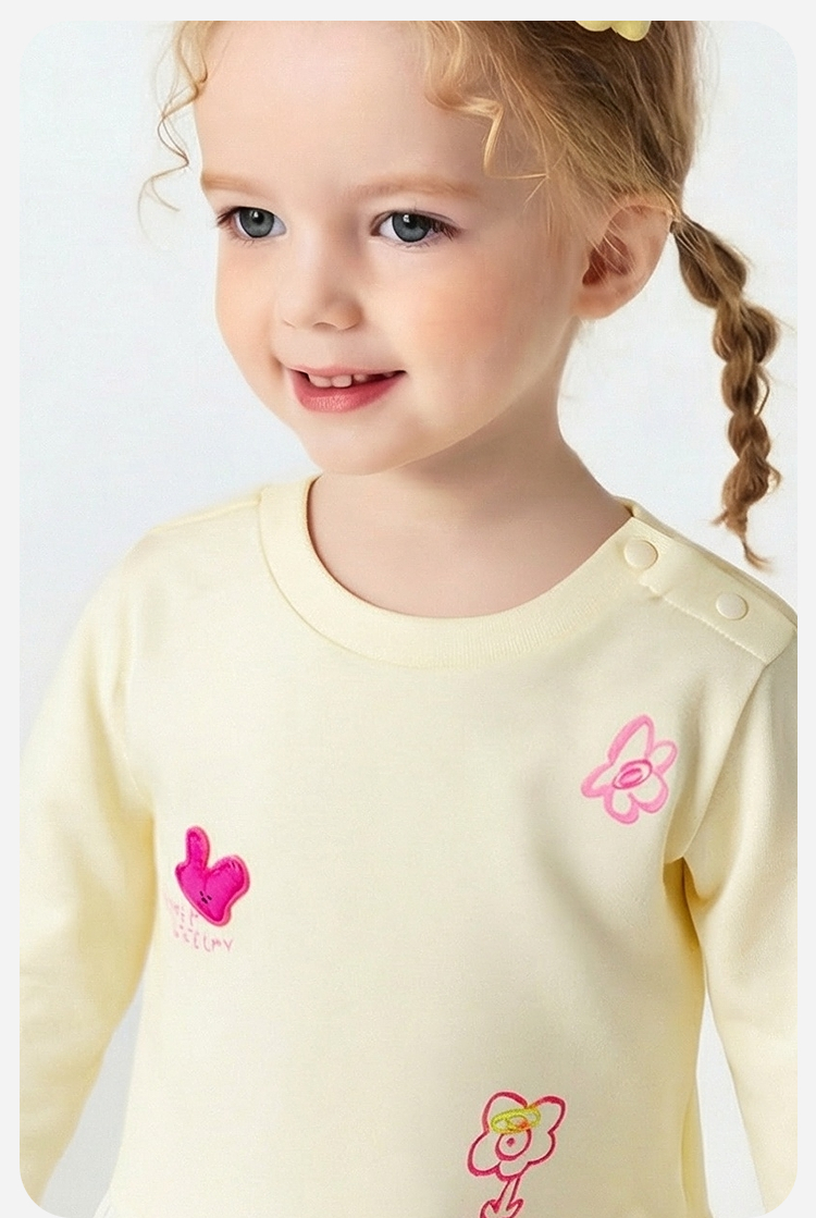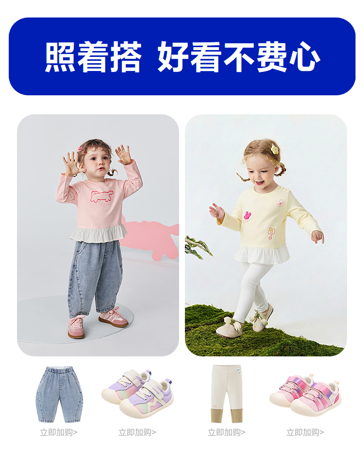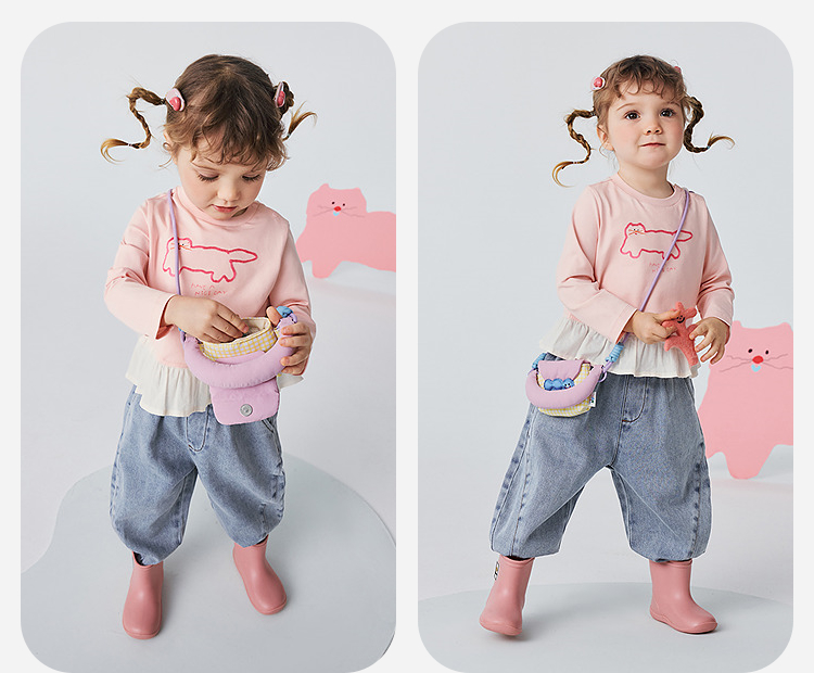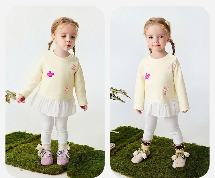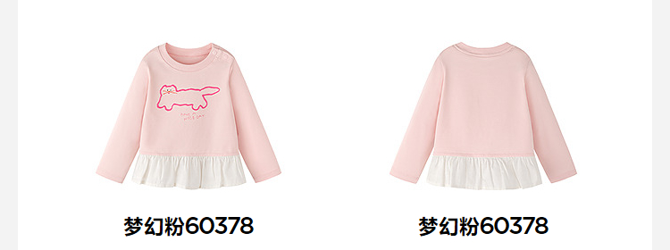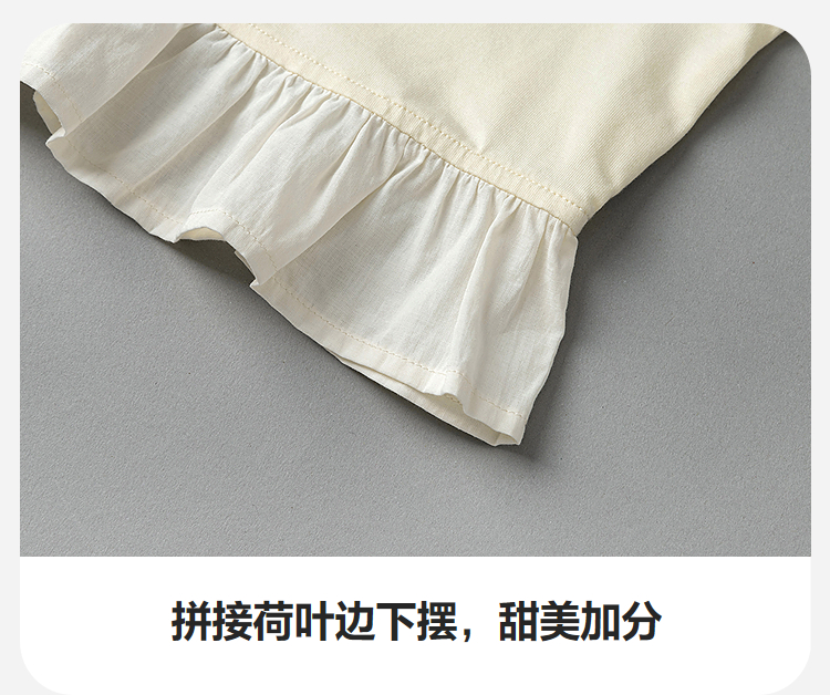 迷你巴拉女童宝宝拼接长袖T恤春新款亲肤植物纤维甜美荷叶边上衣