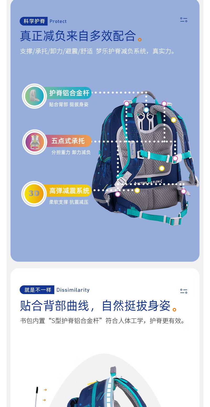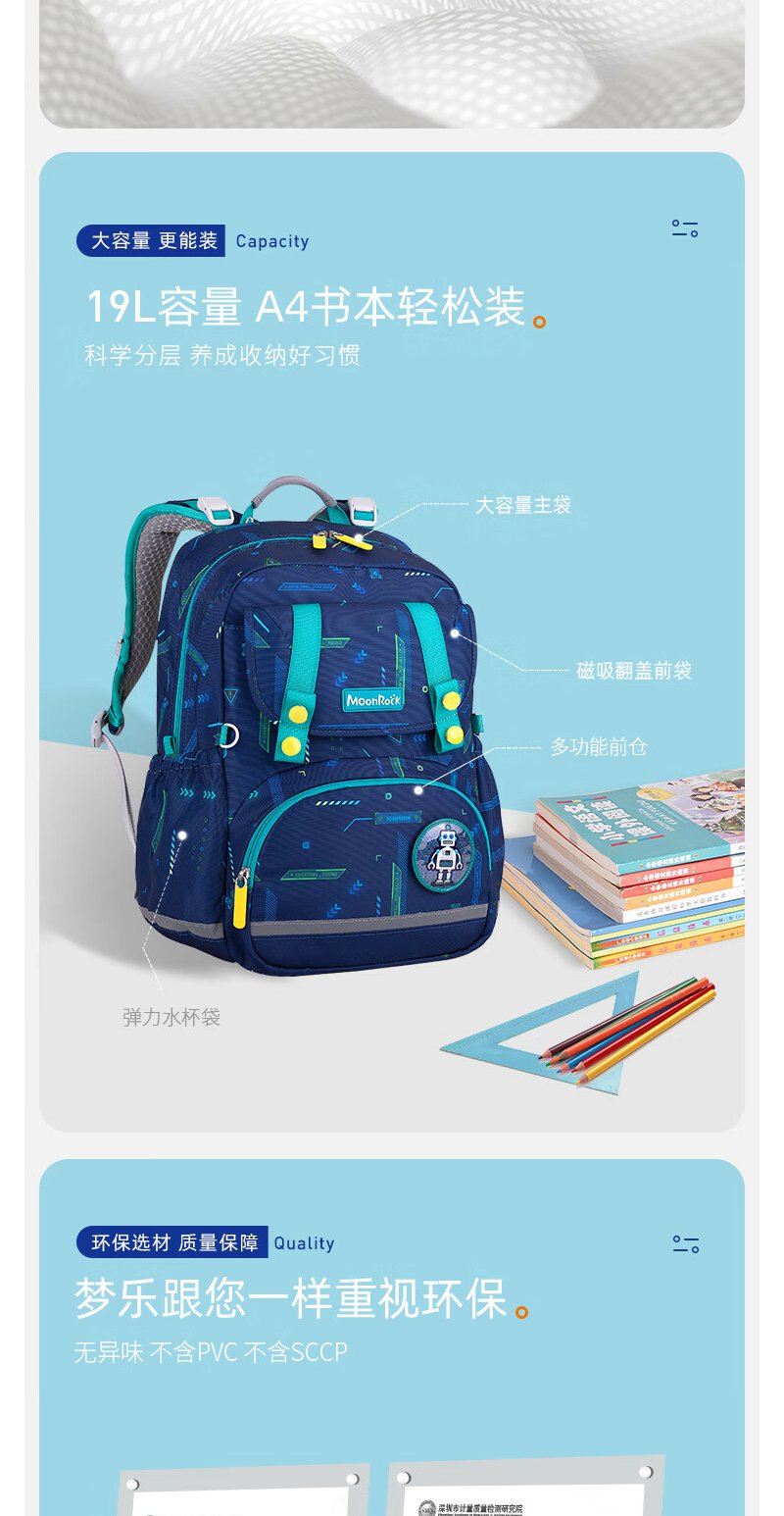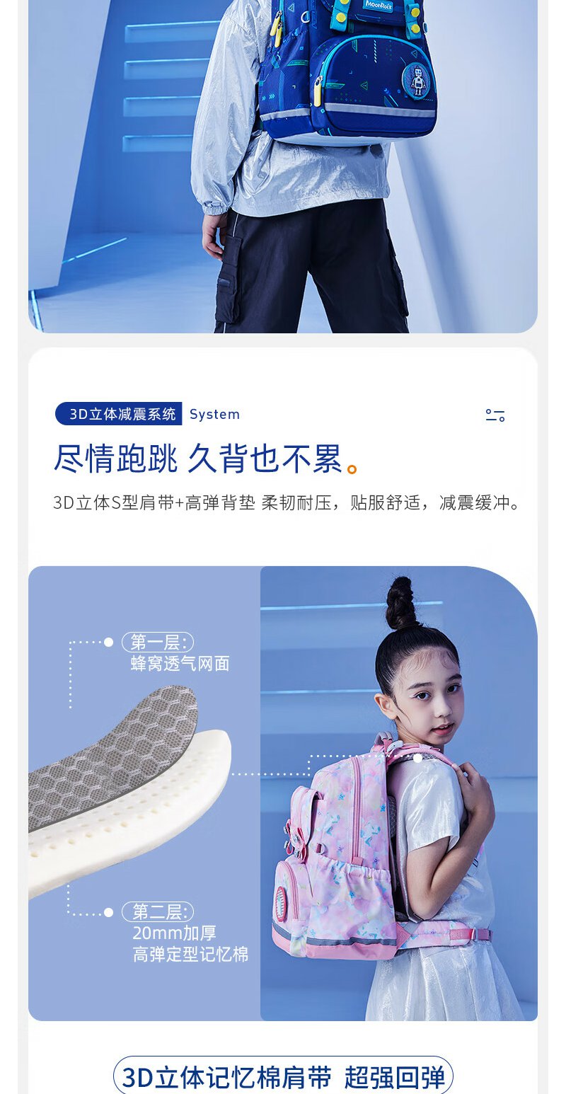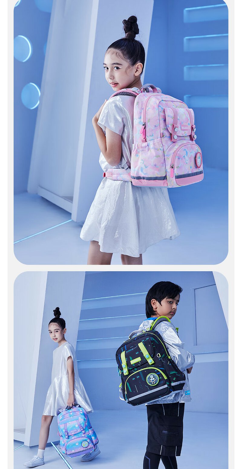 【护童】B座8F | 梦乐(MoonRock)书包小学生男女护脊减负轻便舒适1-3年级儿童书包身高可调节 彩虹粉(梦幻独角兽)