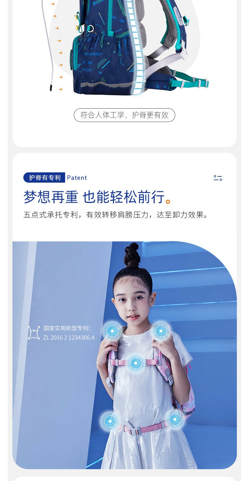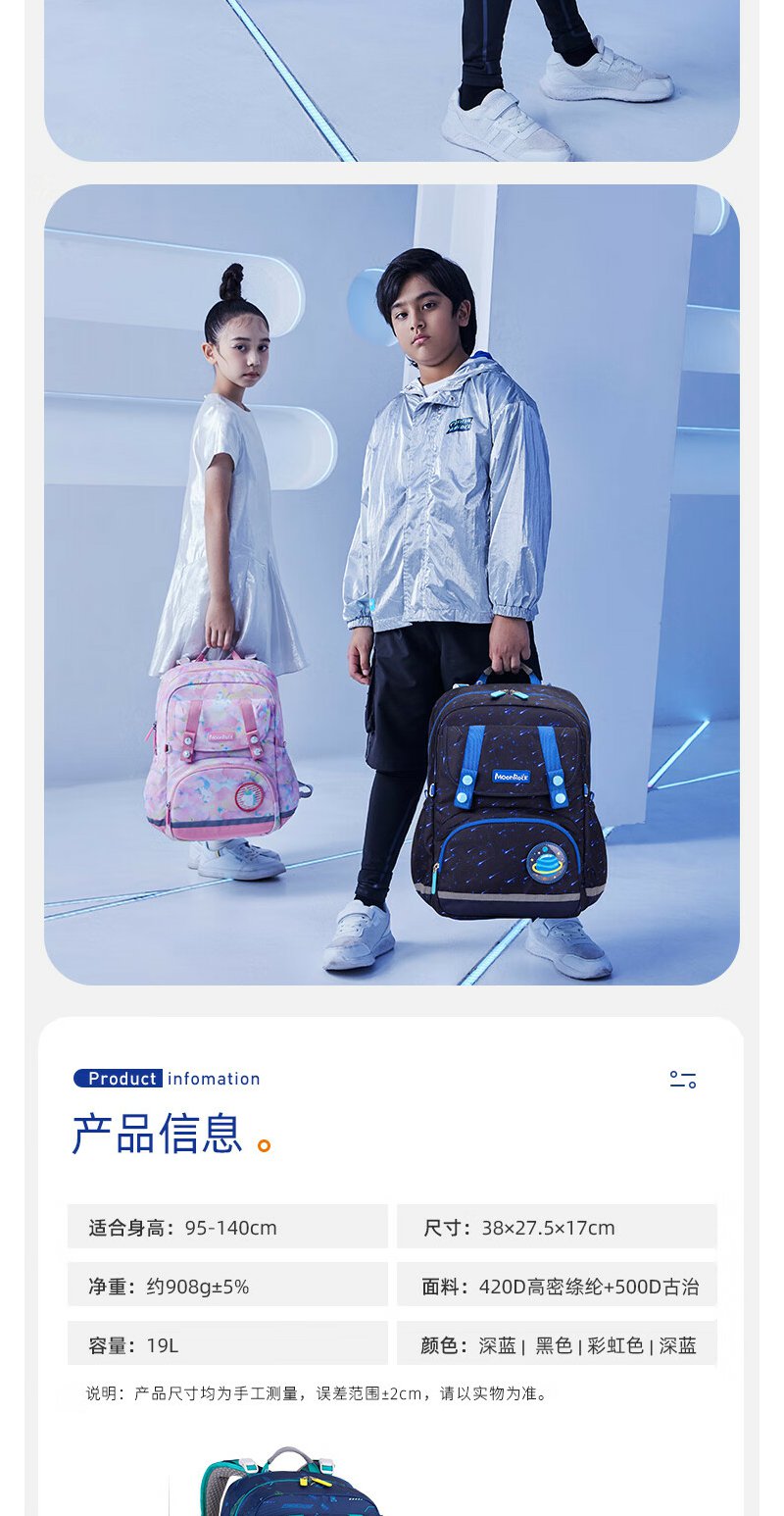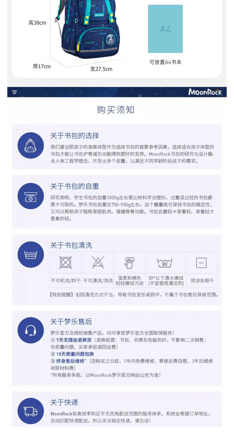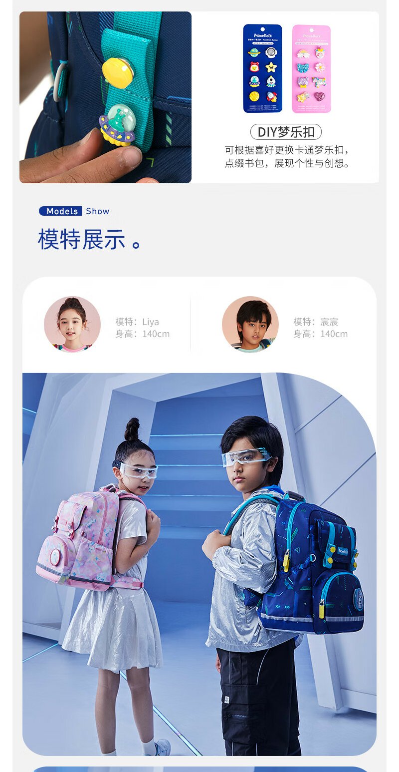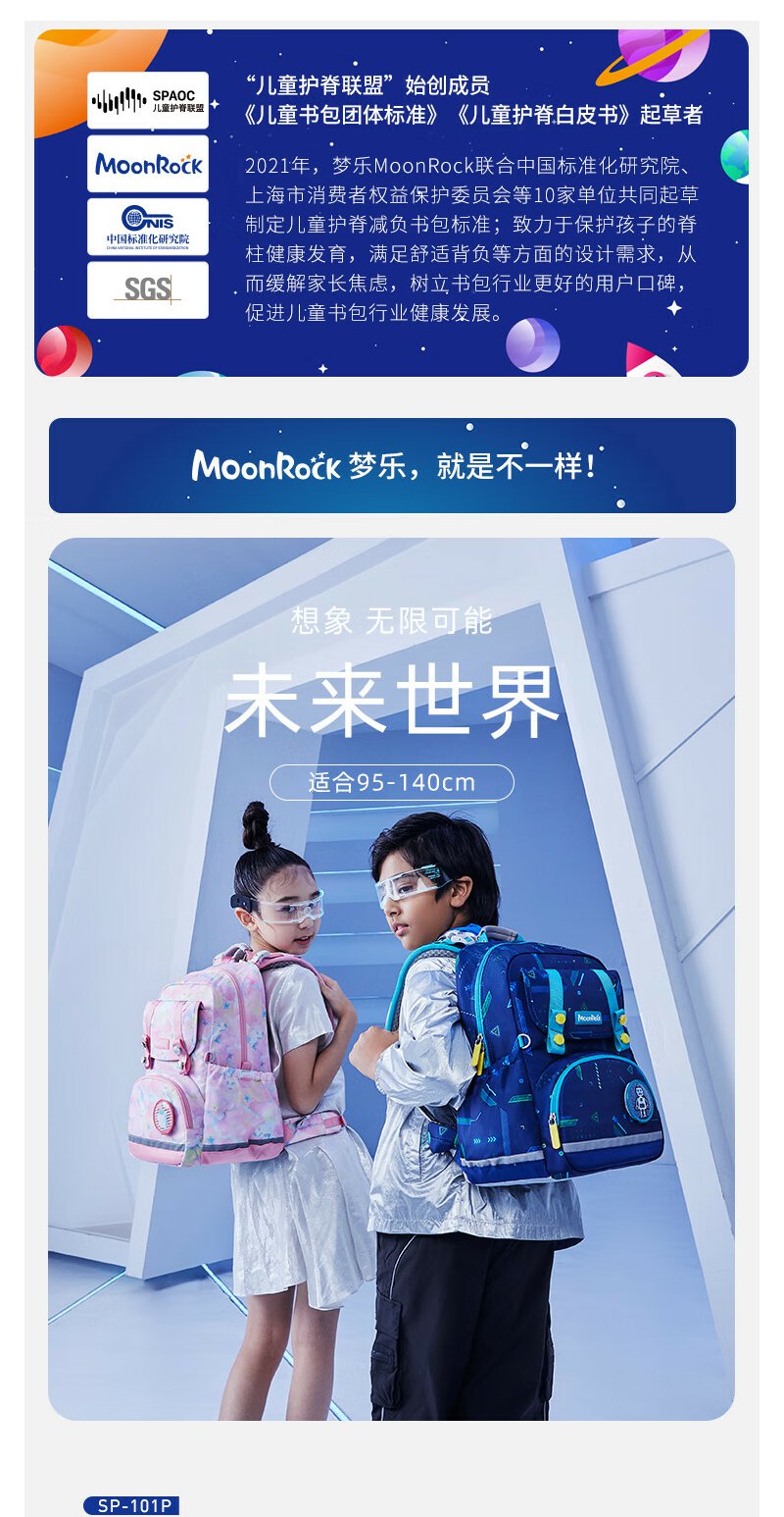 【护童】B座8F | 梦乐(MoonRock)书包小学生男女护脊减负轻便舒适1-3年级儿童书包身高可调节 彩虹粉(梦幻独角兽)