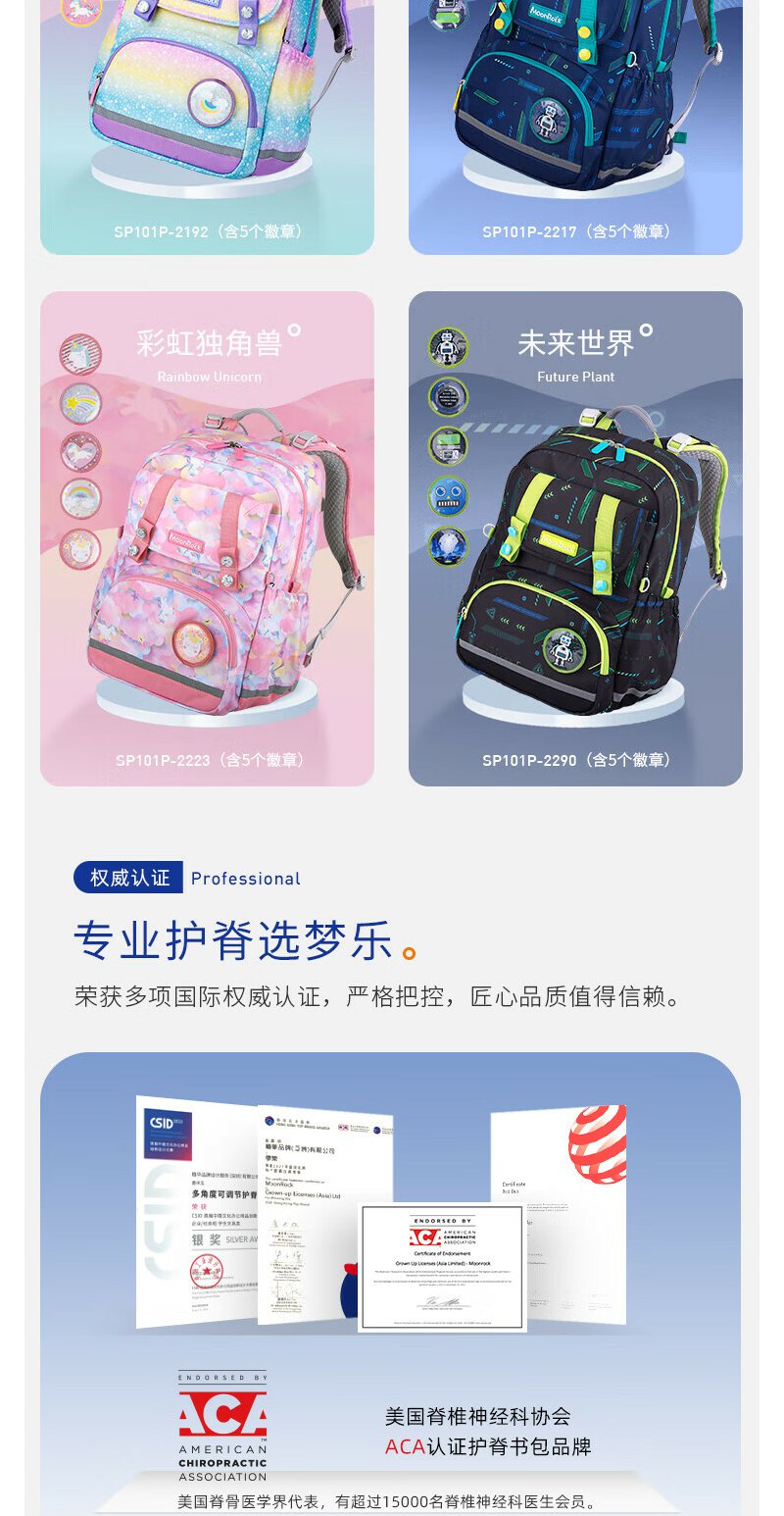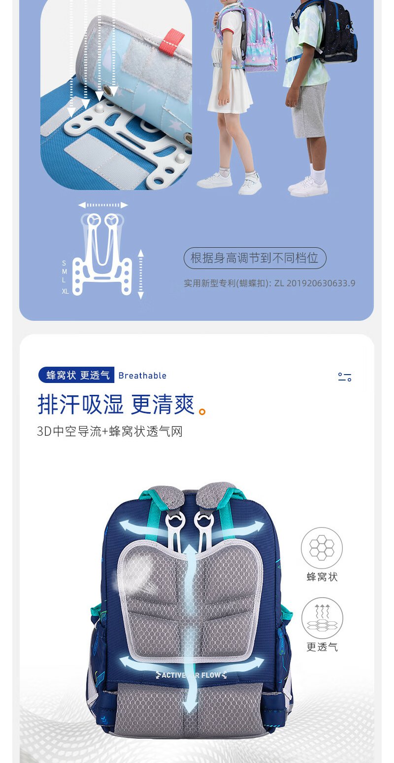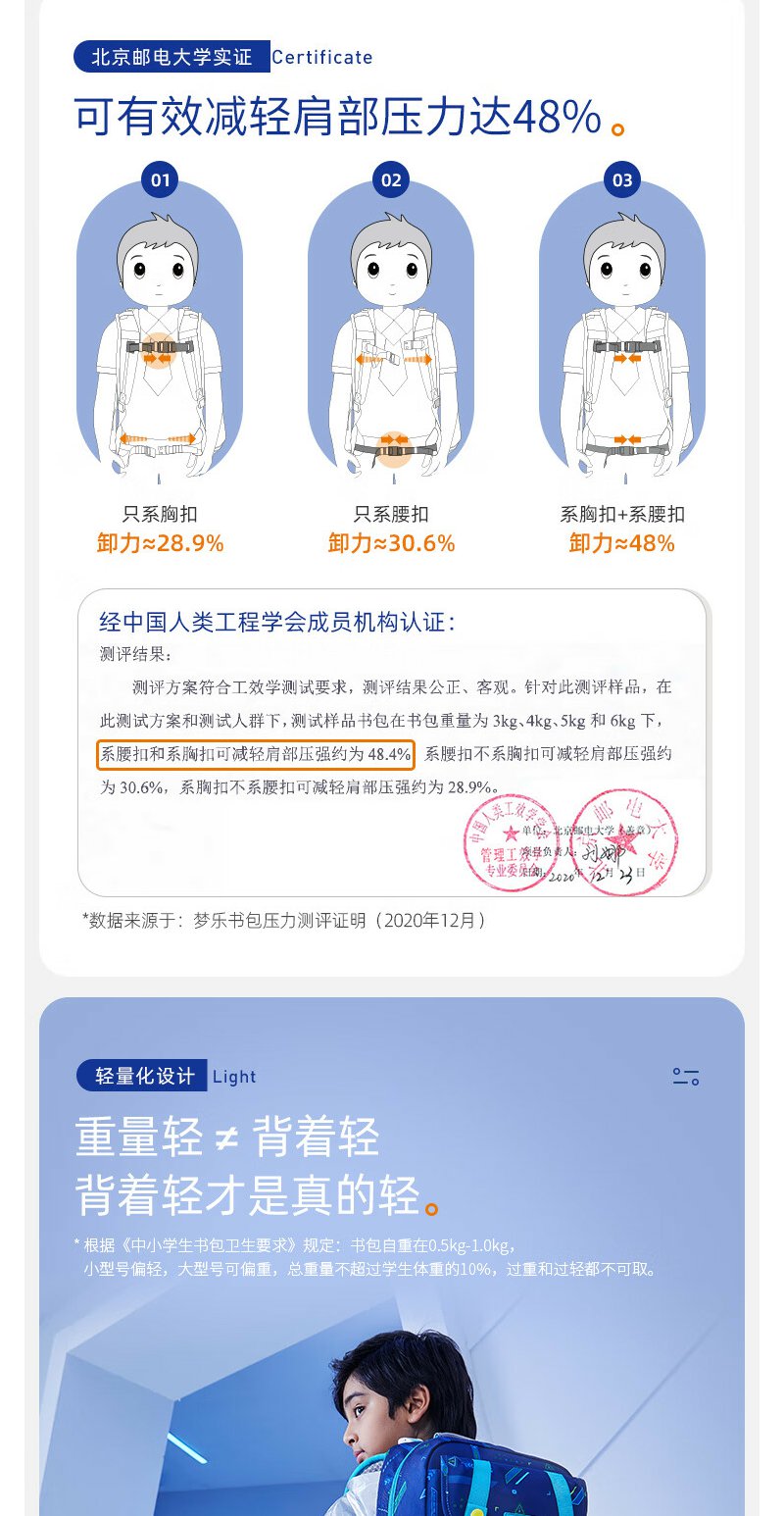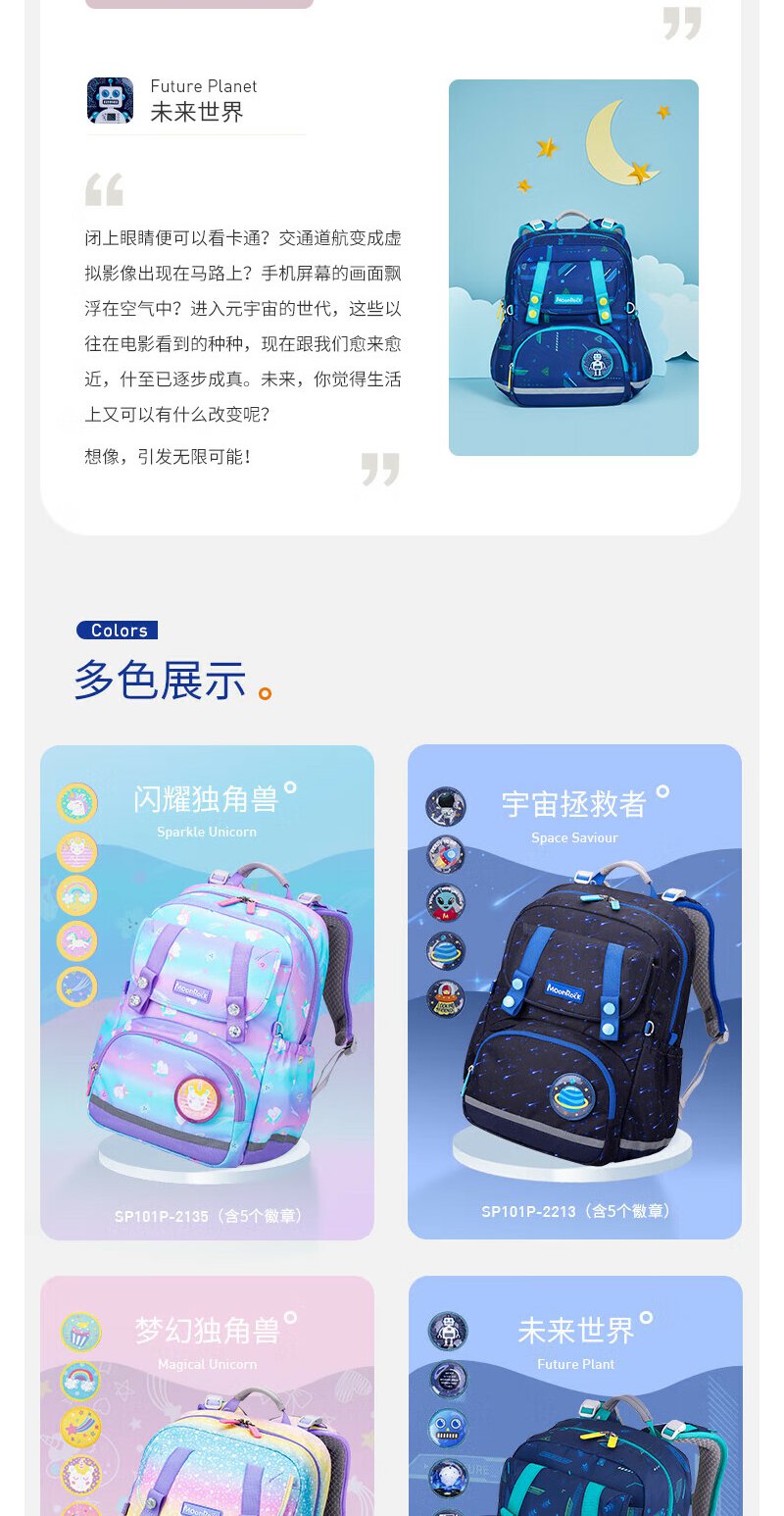 【护童】B座8F | 梦乐(MoonRock)书包小学生男女护脊减负轻便舒适1-3年级儿童书包身高可调节 彩虹粉(梦幻独角兽)