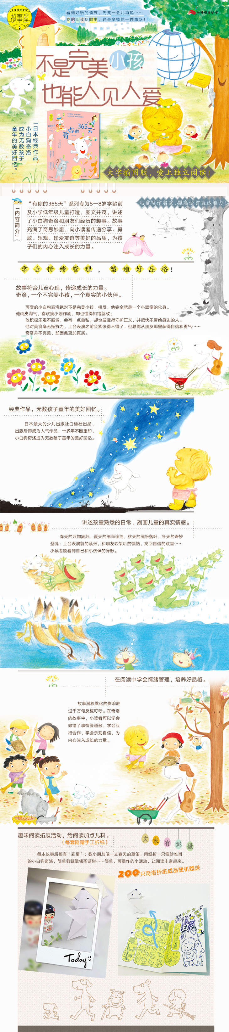 这套书的故事很有趣,奇洛在一年四季遇到各种各样有趣的事,有那么喜欢他的朋友们陪着他,真好。我喜欢每本故事后面的小手工活动,按照说明竟然真的折出了一只小白狗奇洛!太棒了。